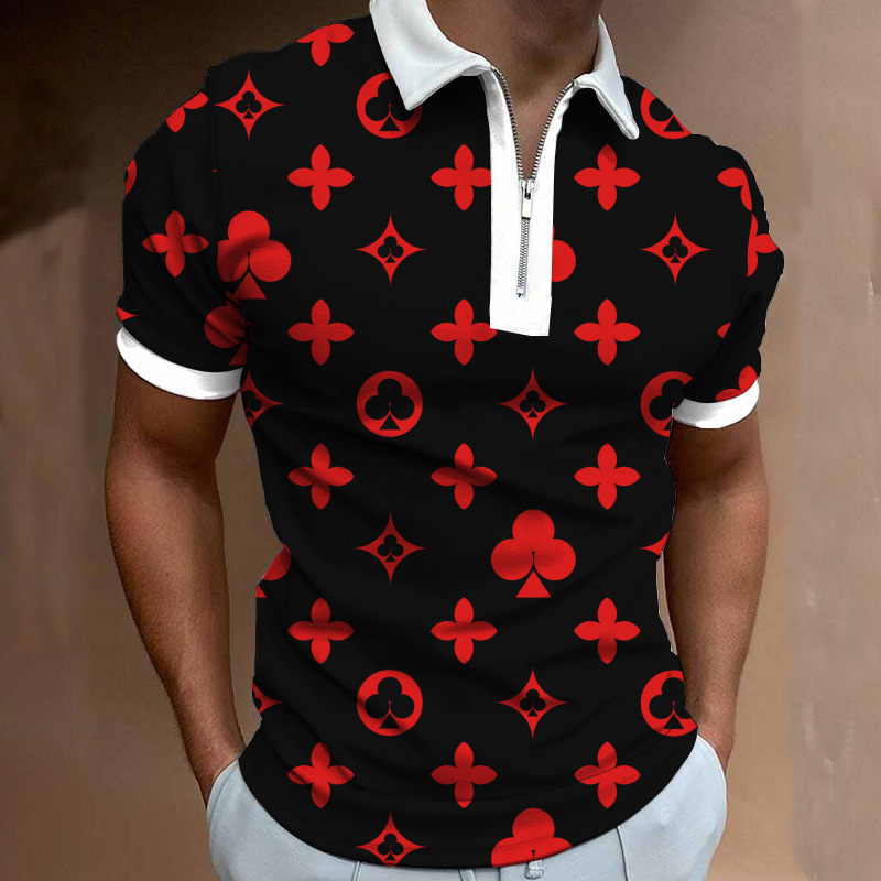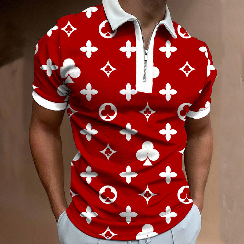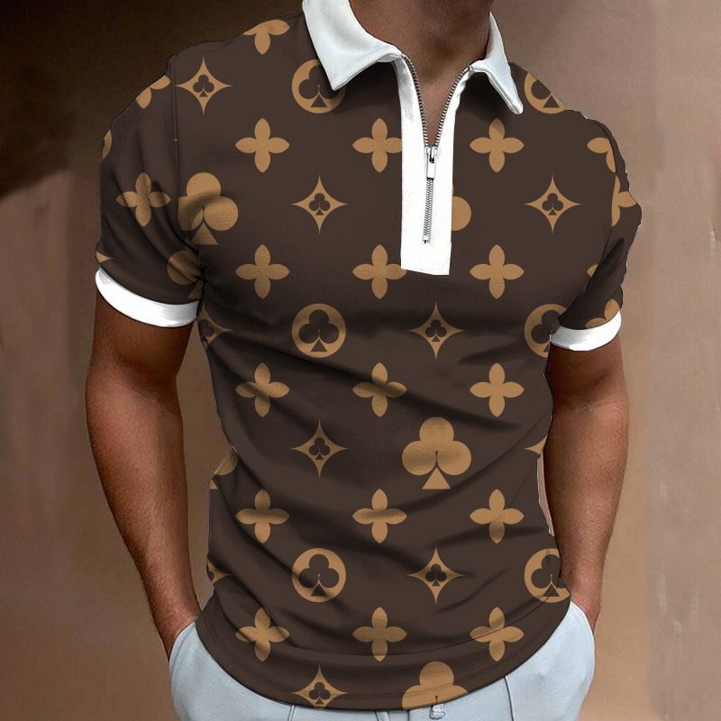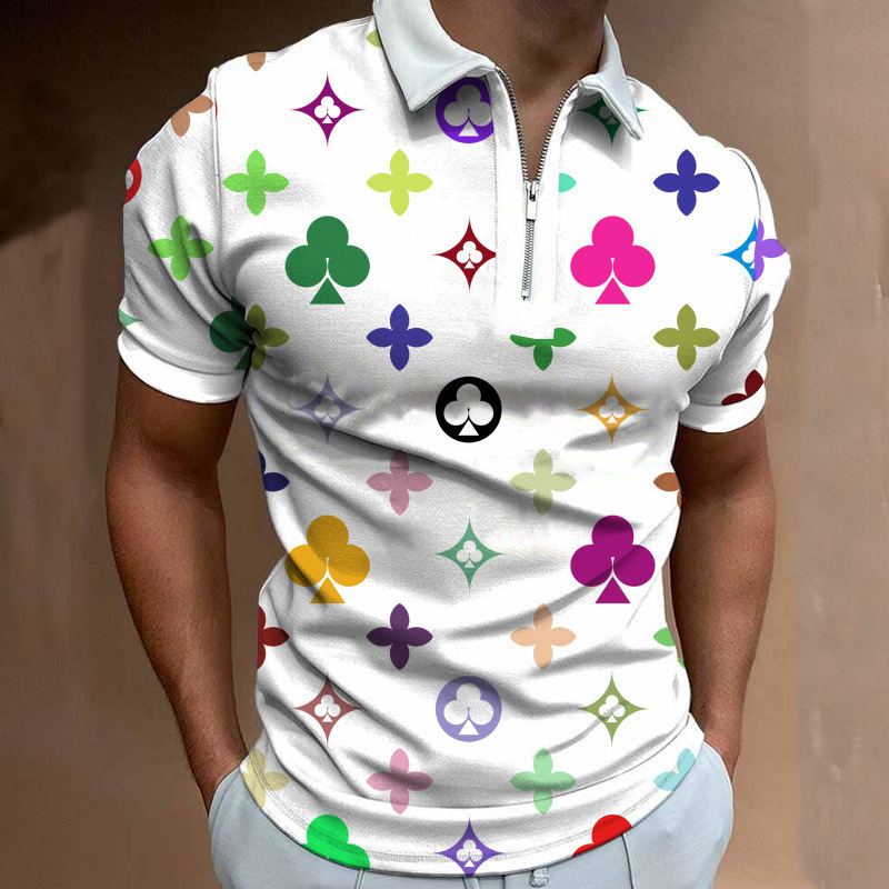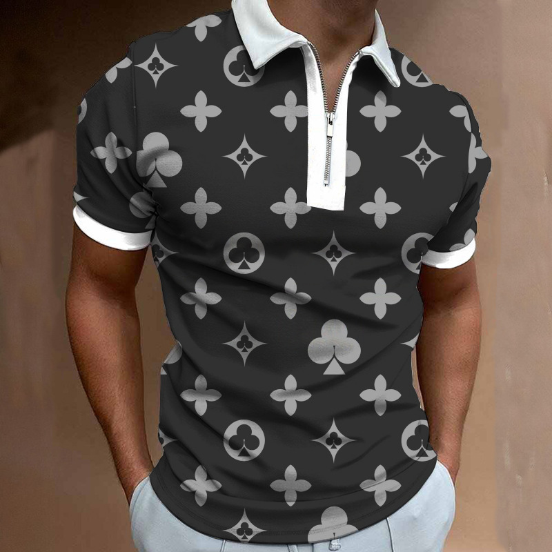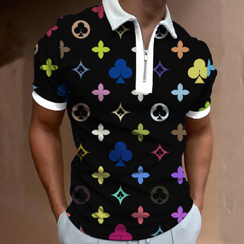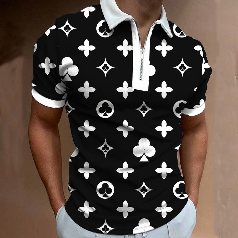 대외 무역 아마존 봄과 여름 새로운 남성 옷깃 셔츠 디지털 인쇄 패션 캐주얼 지퍼 짧은 소매 폴로 셔츠