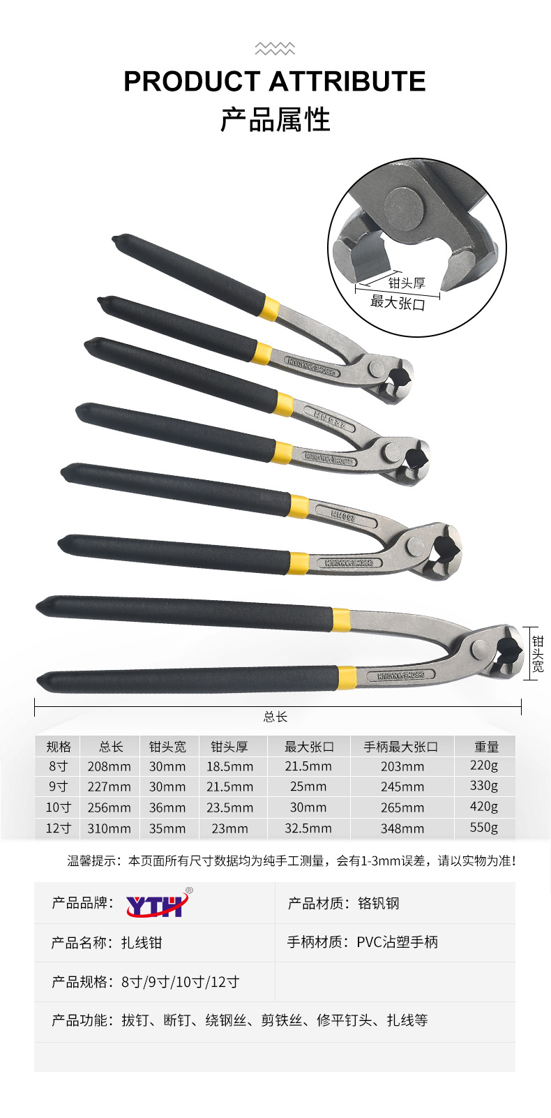 국경 간 도매 산업 등급 호두 펜치 못 당기기 및 바인딩 플라이어 바이스 8 인치 호두 펜치 12 인치 바인딩 펜치스토어 가기