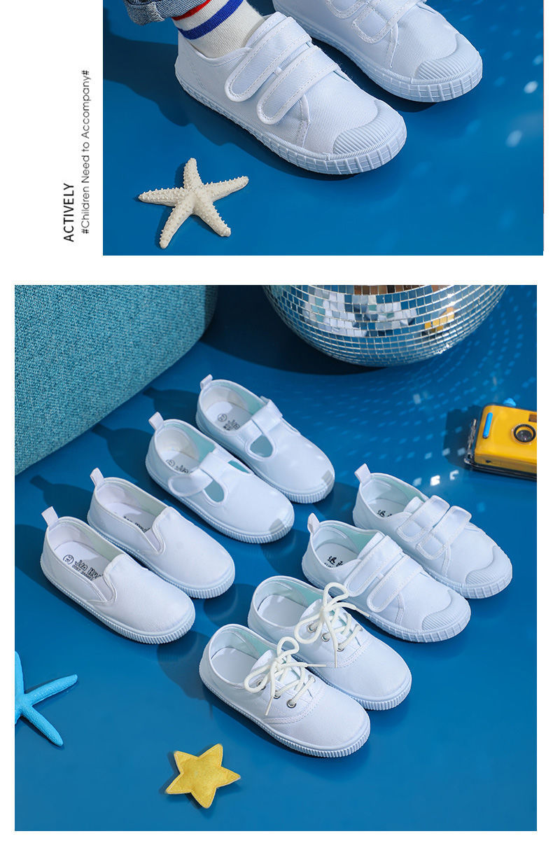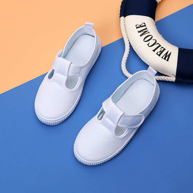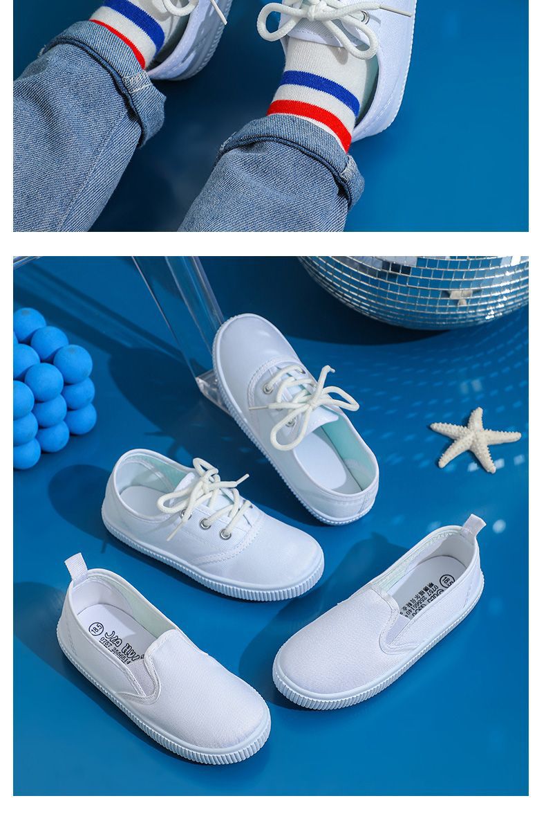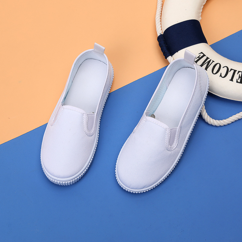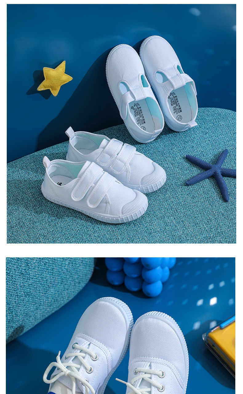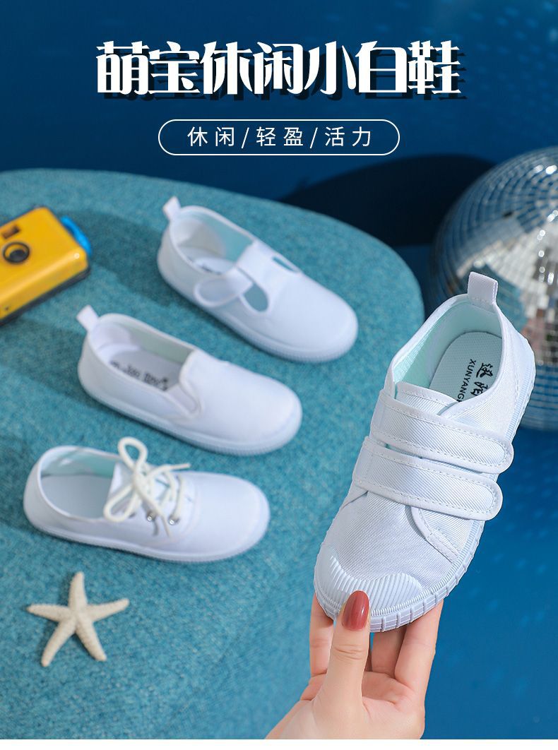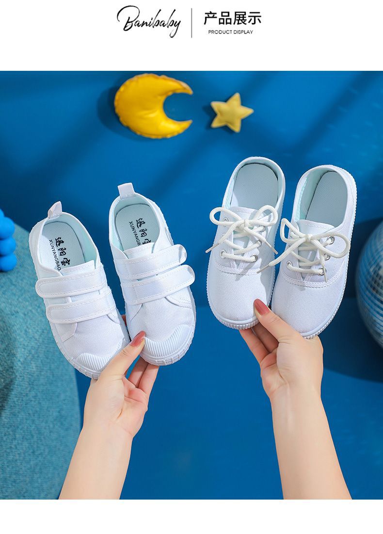 캠퍼스 흰색 신발 봄과 가을 어린이 캔버스 신발 부드러운 바닥 미끄럼 방지 남성과 여성의 작은 중간 및 큰 어린이 학생 유치원 실내스토어 가기