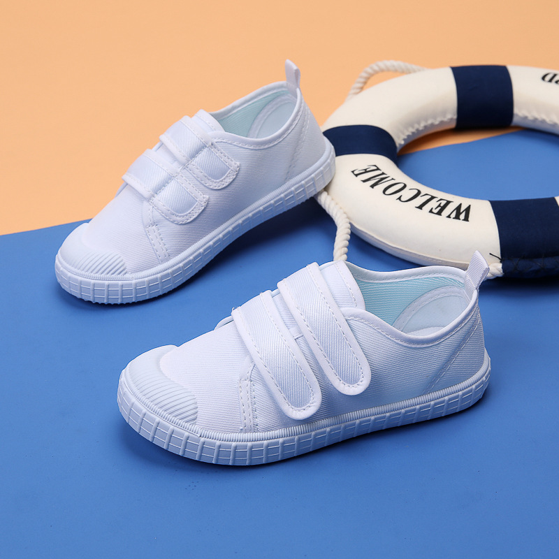 캠퍼스 흰색 신발 봄과 가을 어린이 캔버스 신발 부드러운 바닥 미끄럼 방지 남성과 여성의 작은 중간 및 큰 어린이 학생 유치원 실내