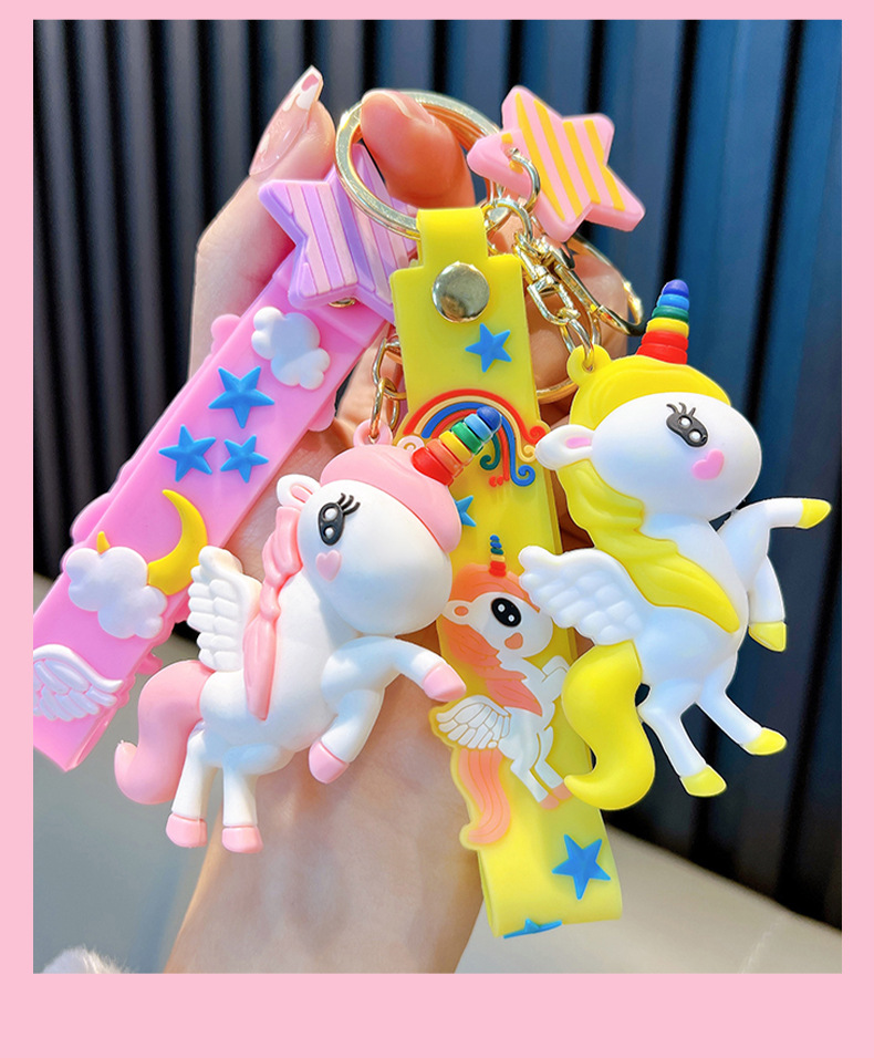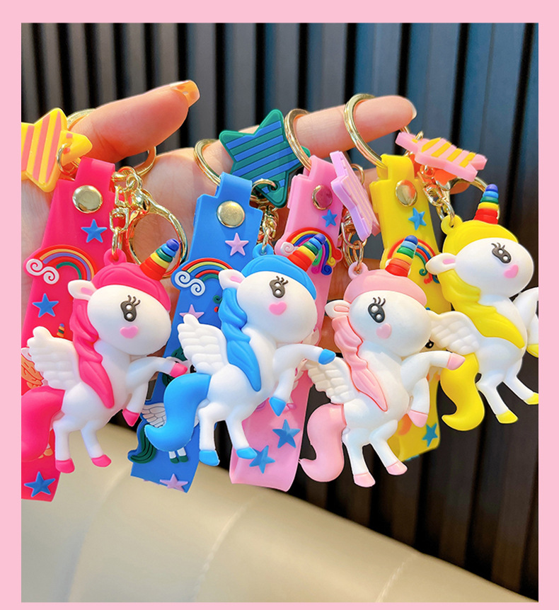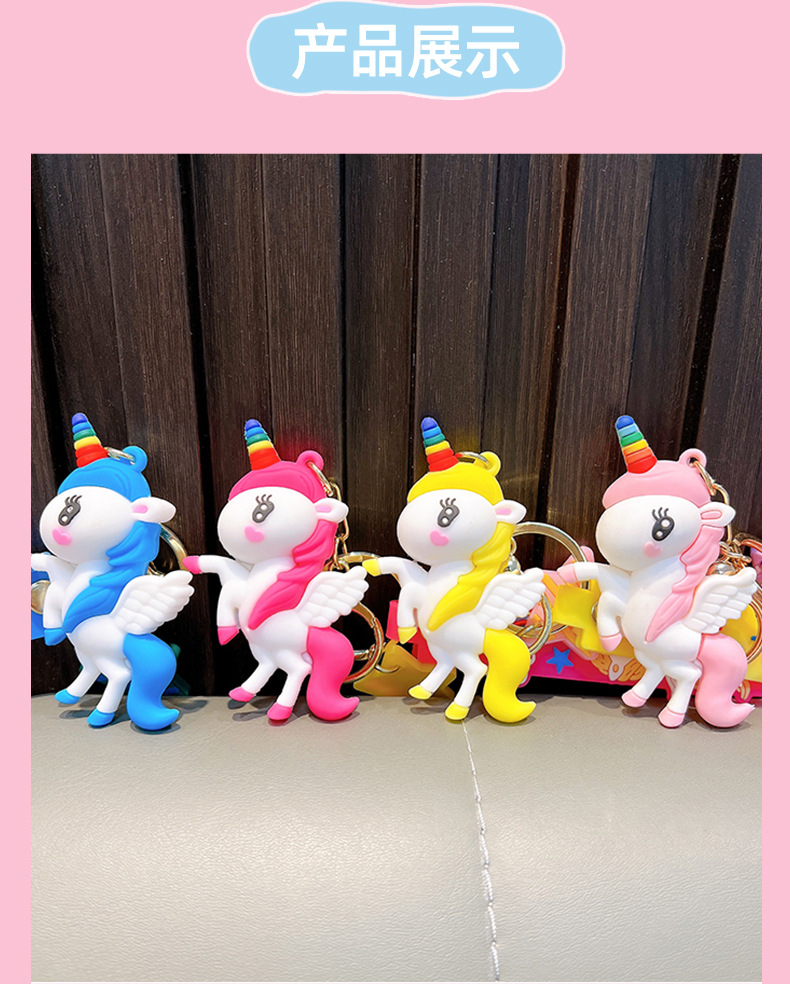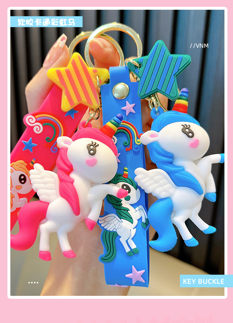 무지개 유니콘 키 체인 펜던트 pvc 유연한 접착제 페가수스 커플 배낭 교수형 발톱 기계 인형 선물 도매스토어 가기