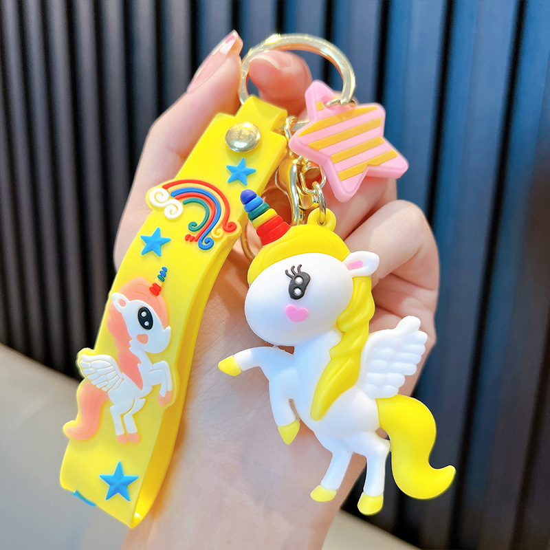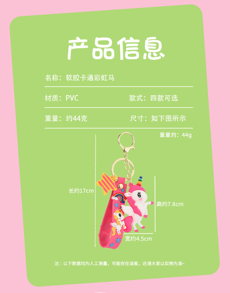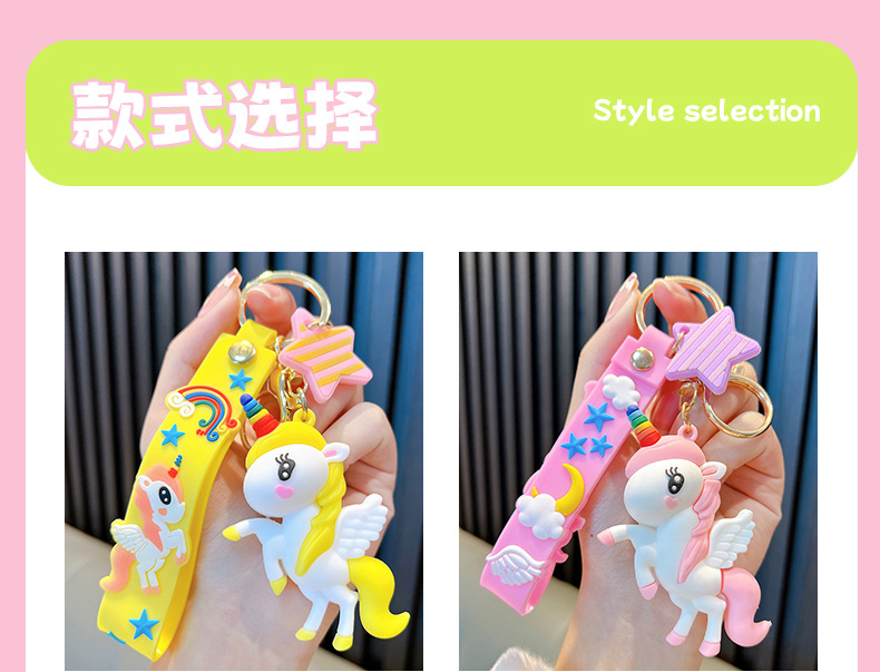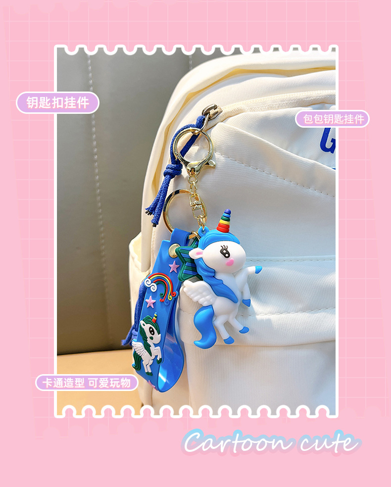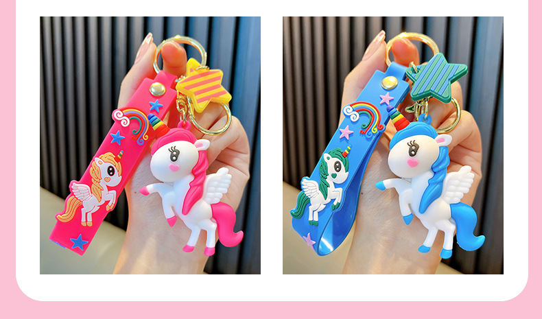 무지개 유니콘 키 체인 펜던트 pvc 유연한 접착제 페가수스 커플 배낭 교수형 발톱 기계 인형 선물 도매스토어 가기