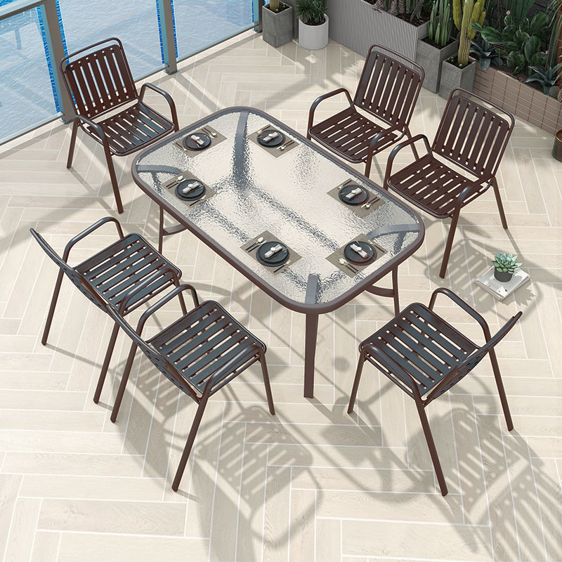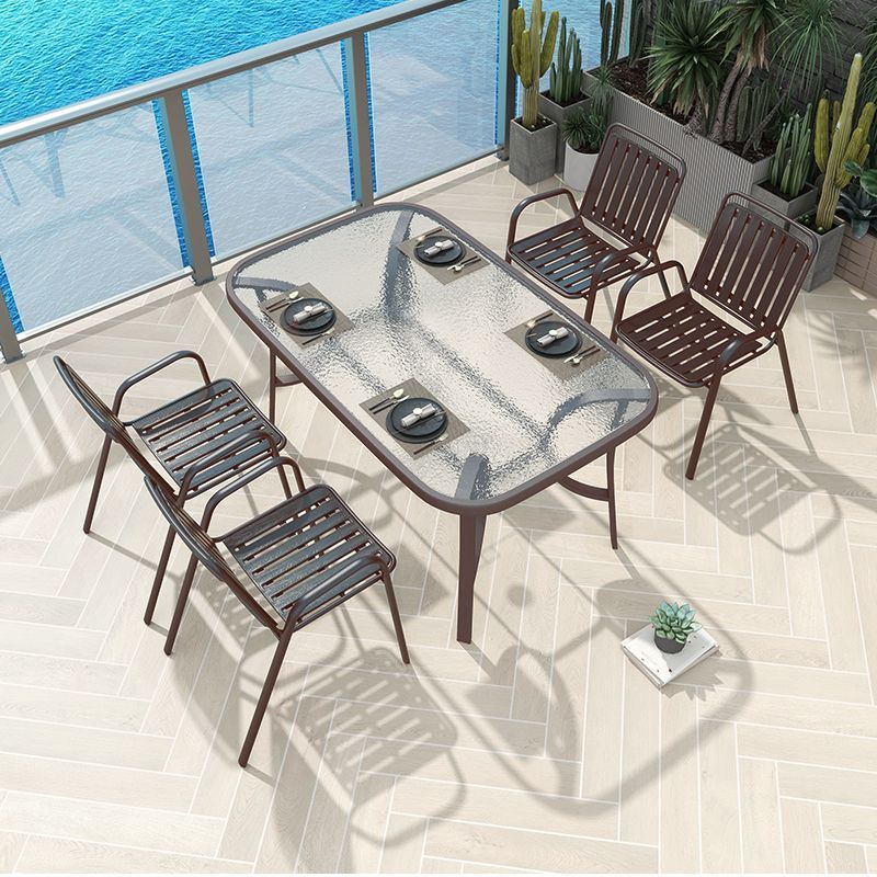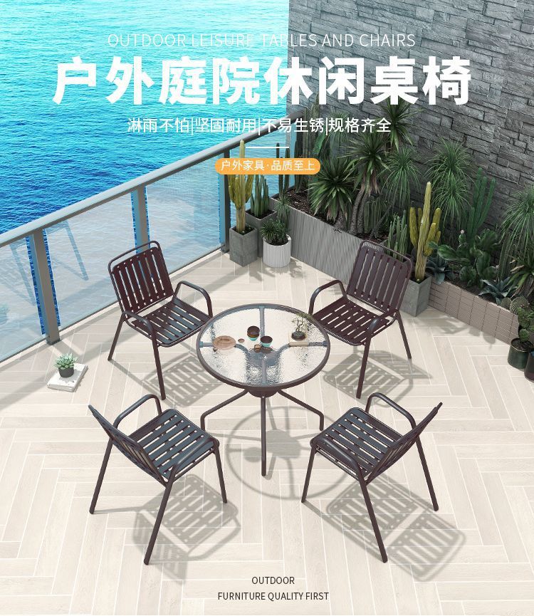 야외 테이블과 의자 안뜰 레저 테이블과 의자 조합 커피 숍 야외 발코니 정원 테라스 플라스틱 나무 테이블과 의자