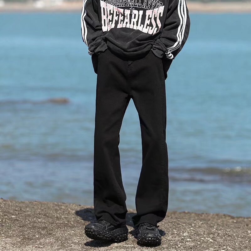디자인 느낌 스키니 청바지 남성 봄과 여름 패션 브랜드 미국 느슨한 스트레이트 드레이핑 걸레 캐주얼 바지 남성스토어 가기