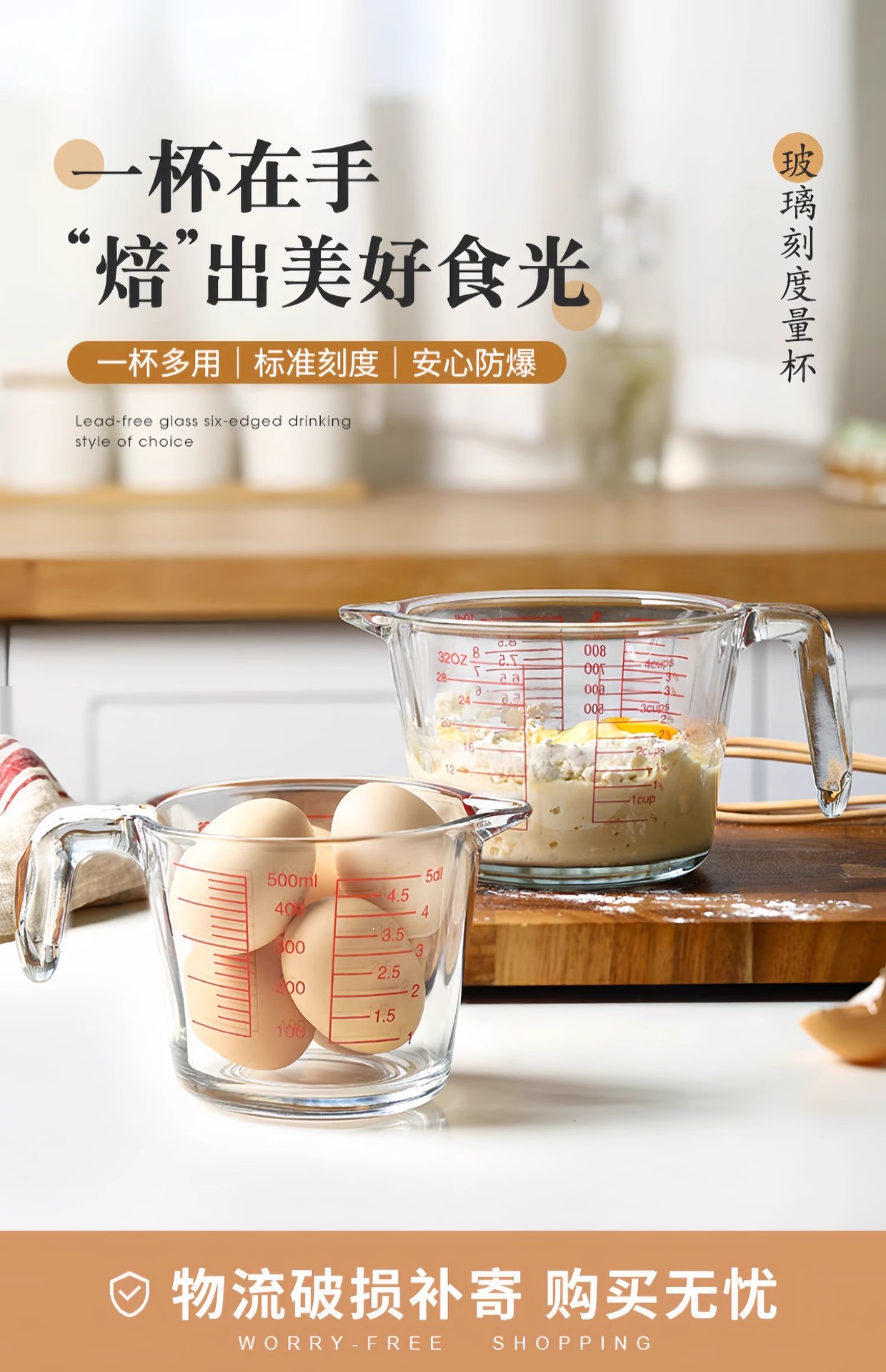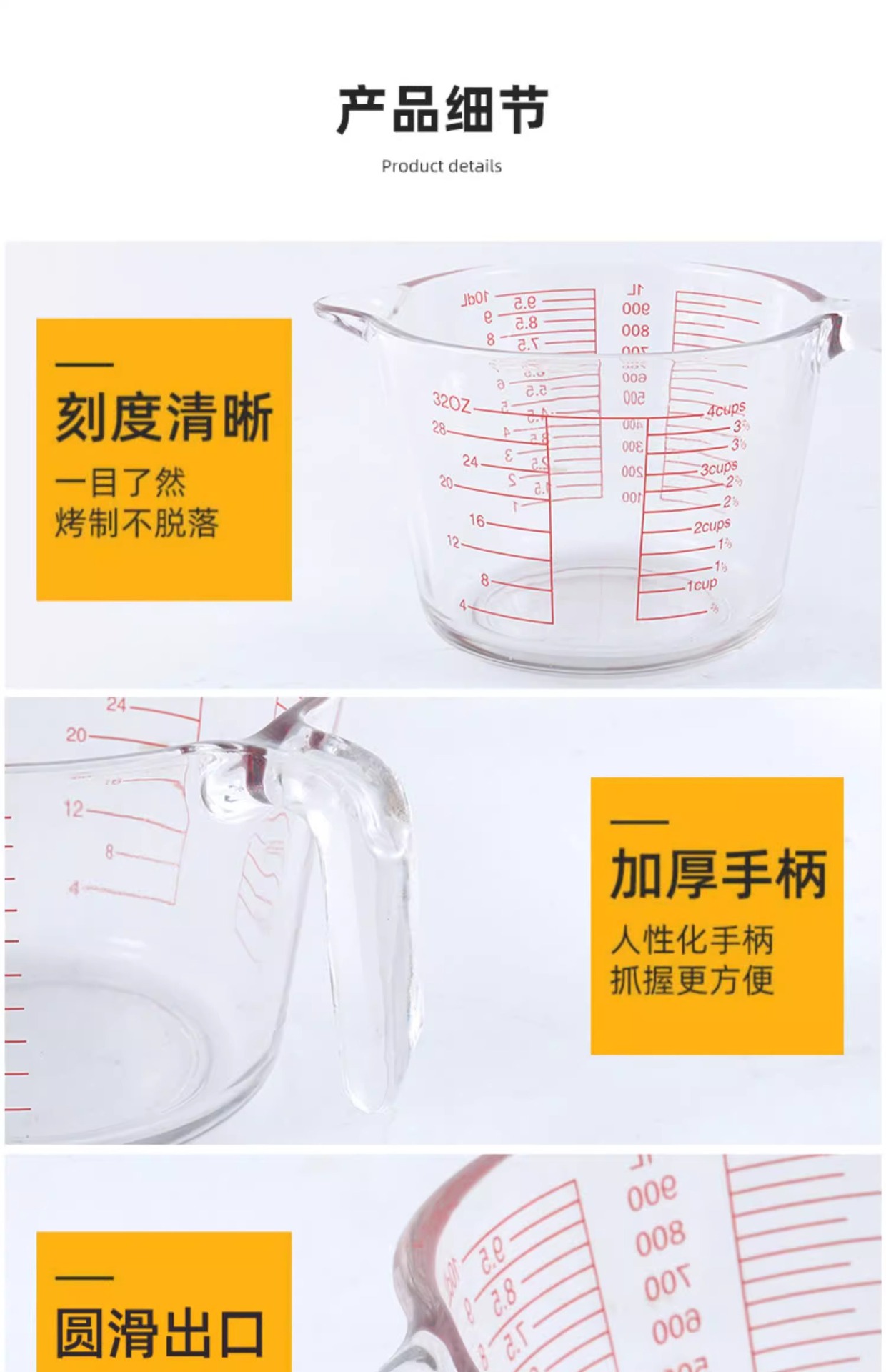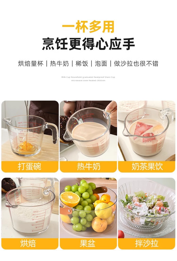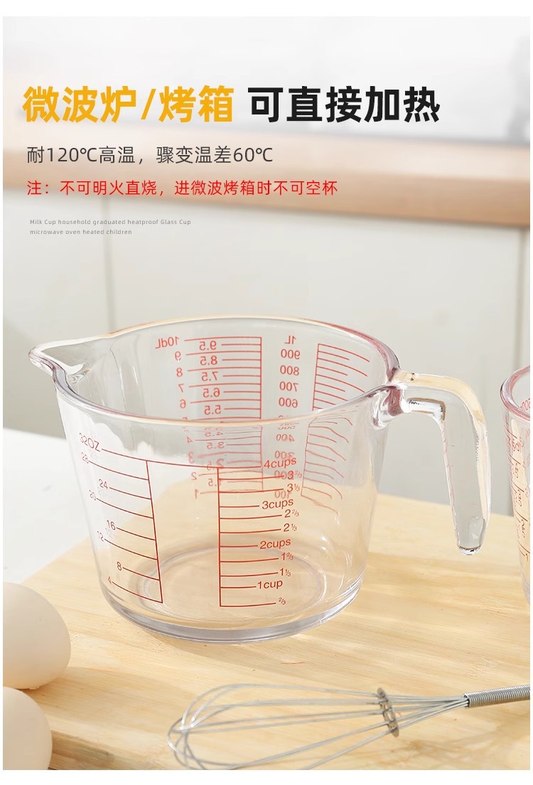 공장 직접 배치 강화 유리 스케일 측정 컵 고온 저항 전자 레인지 가열 컵 우유 컵 두꺼운 실험 장비스토어 가기