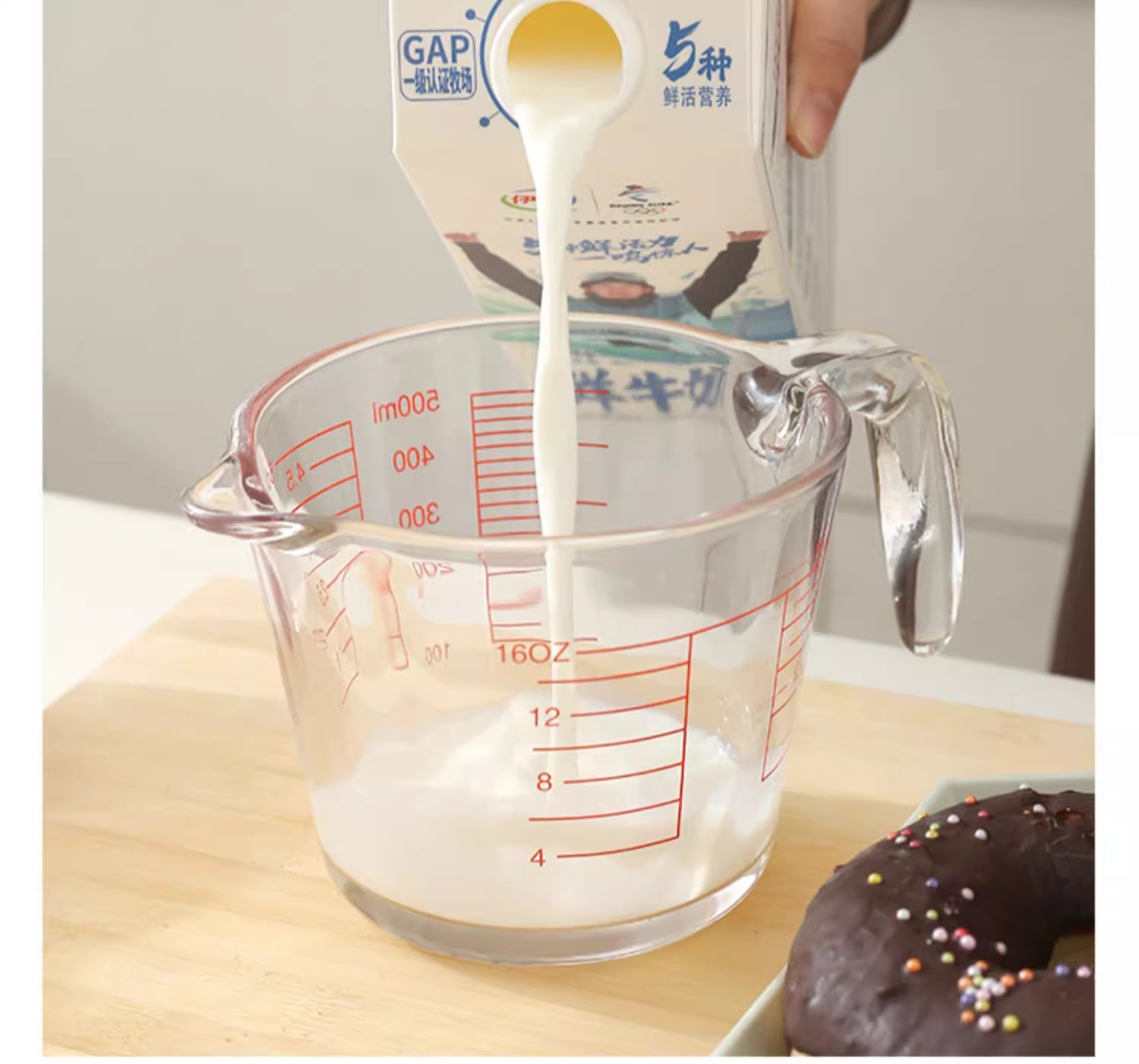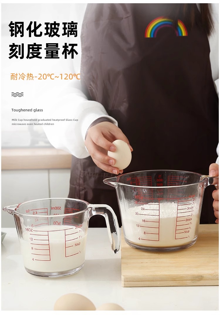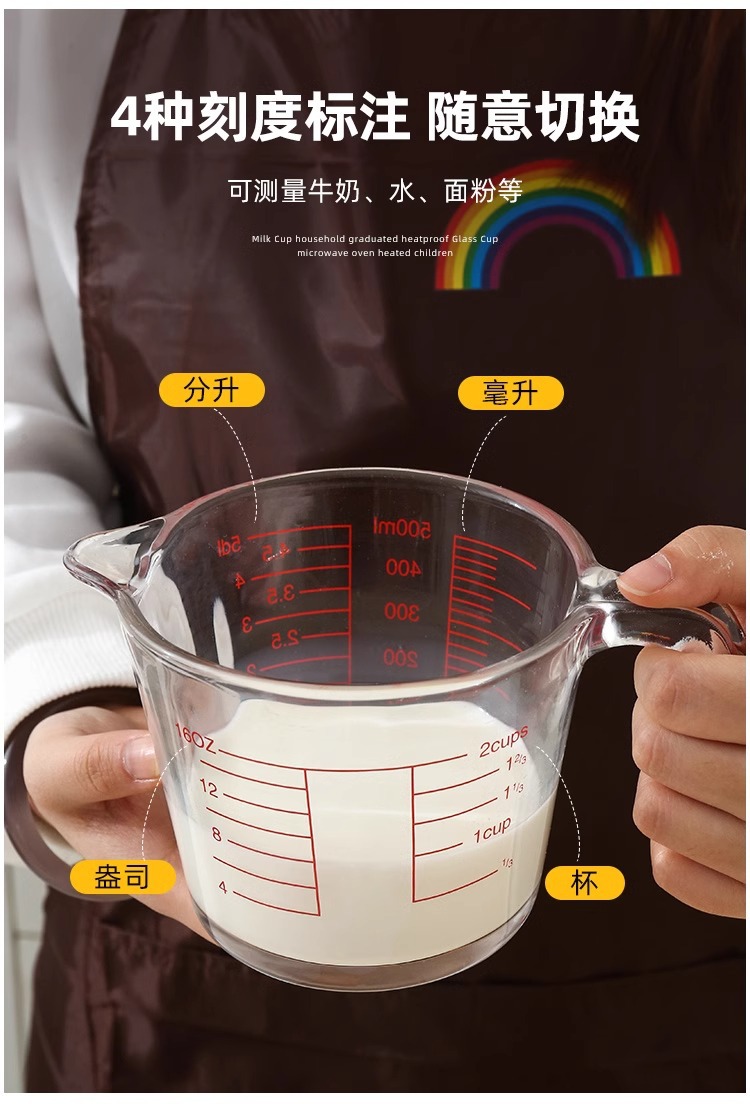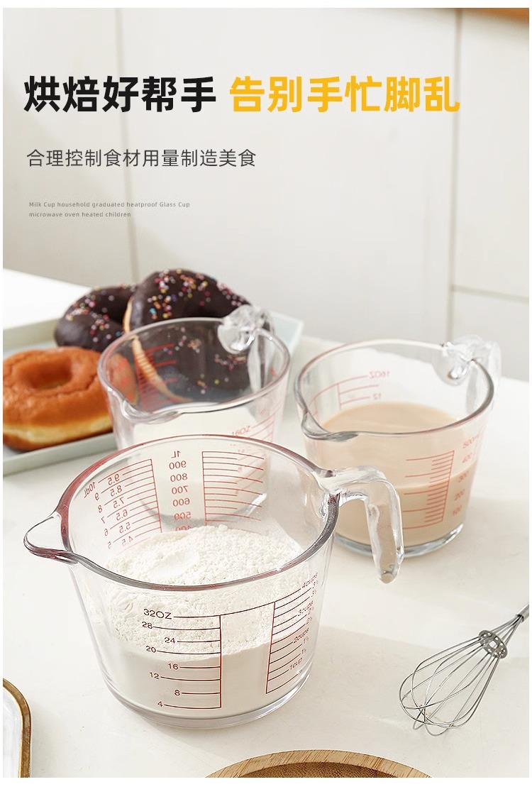 공장 직접 배치 강화 유리 스케일 측정 컵 고온 저항 전자 레인지 가열 컵 우유 컵 두꺼운 실험 장비