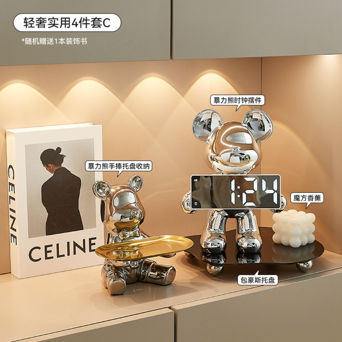 • 장식품 은도금 곰 트레이 + 수납 선반