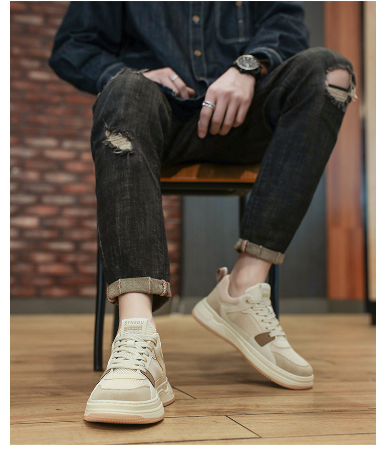 2024 봄 새로운 남성용 세련된 내마모성 보드 신발 두꺼운 캐주얼 대학 미끄럼 방지 올 슬립 올 매치 남성용 보드 신발