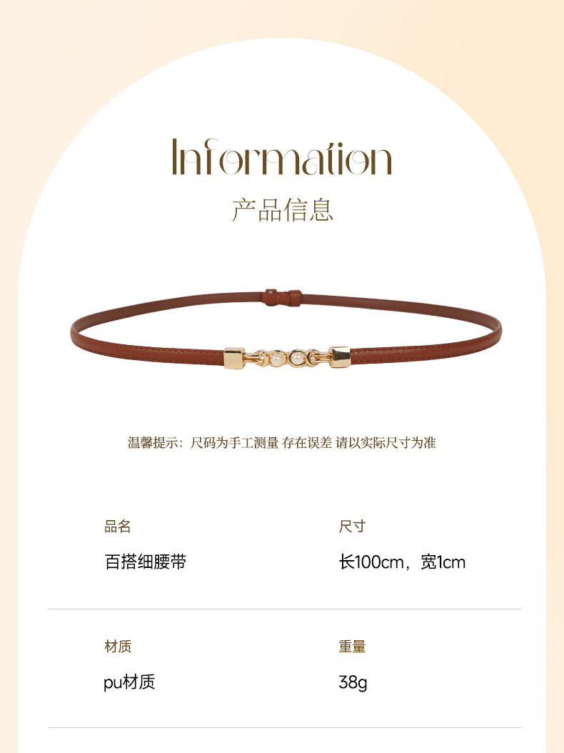 다용도 여성용 얇은 벨트, 패셔너블한 버클 장식, 드레스와 셔츠에 어울리는 허리끈, 진주 가죽 벨트, 고급스러운 느낌스토어 가기