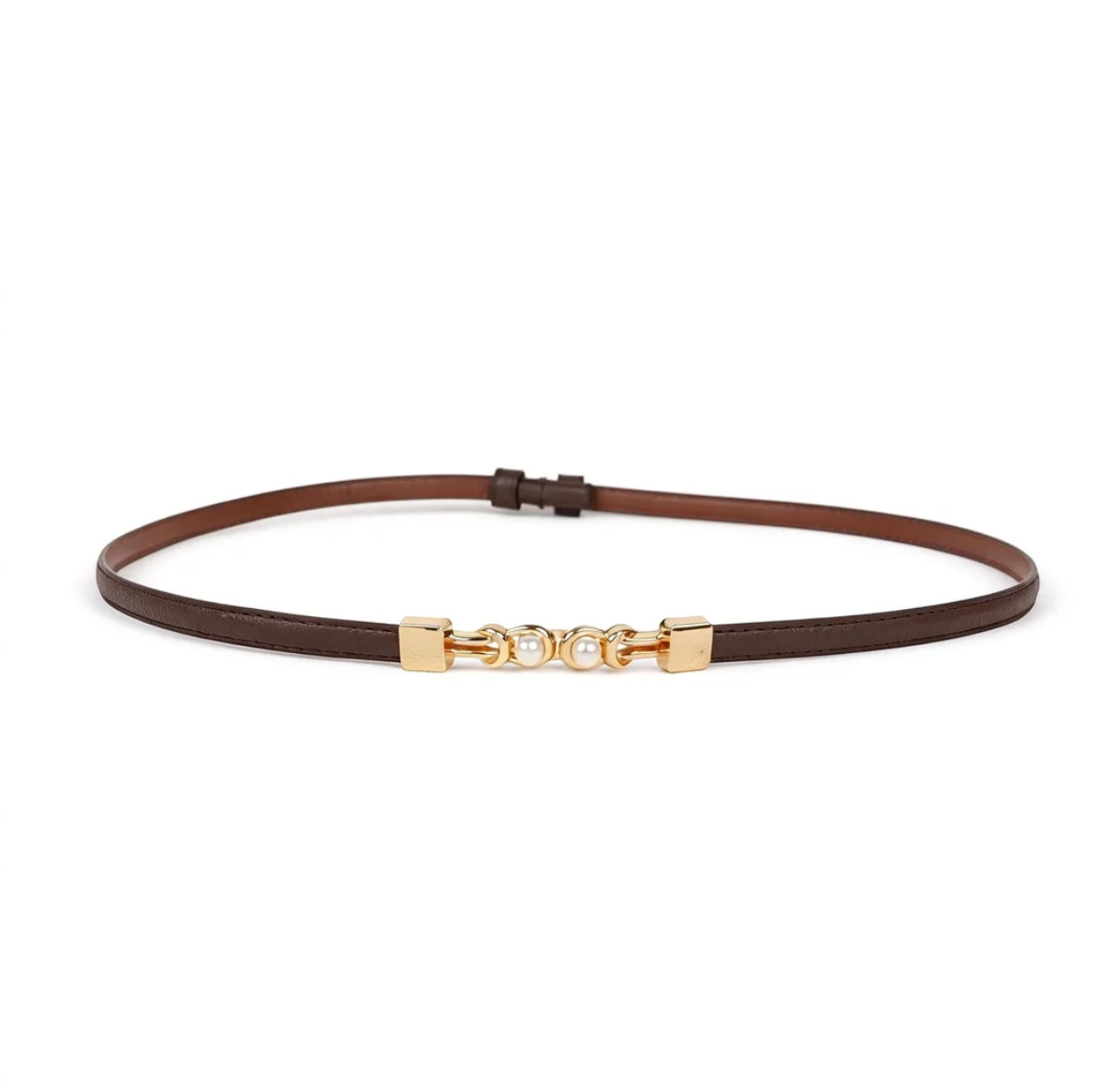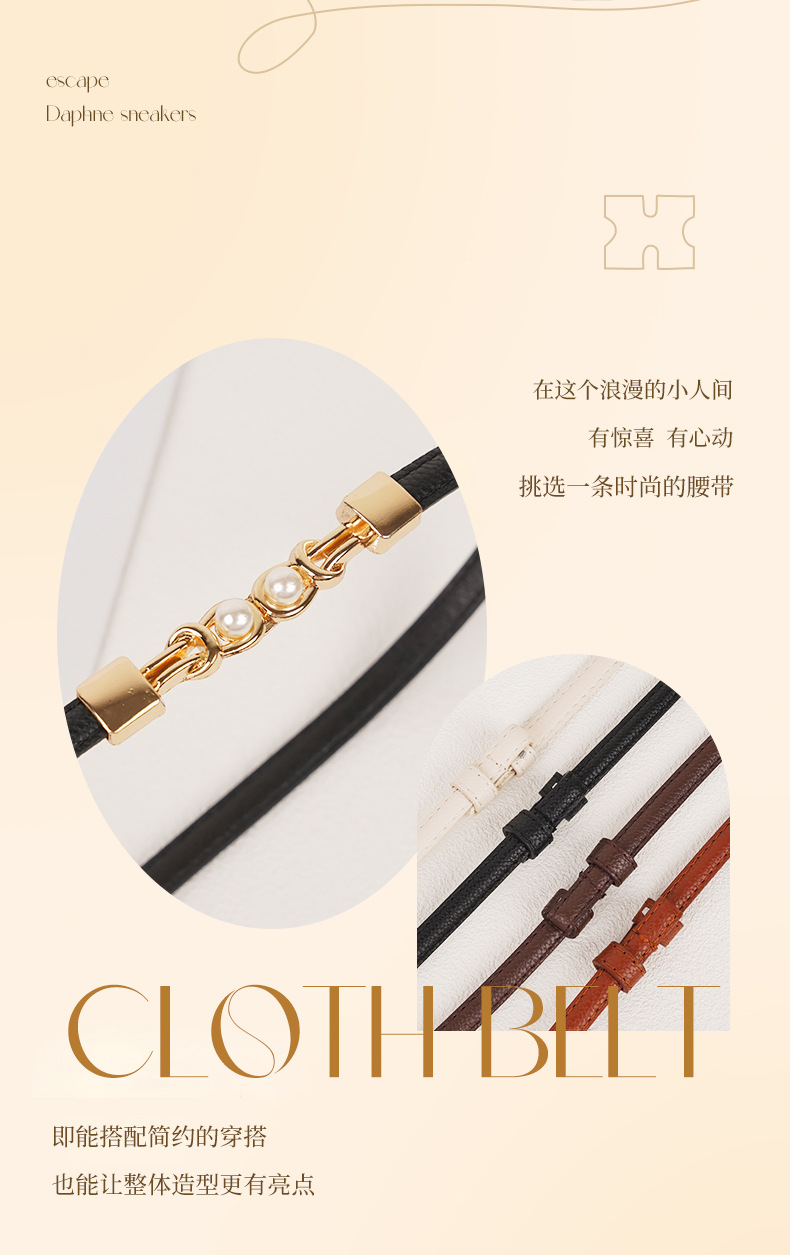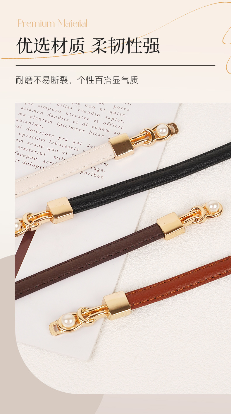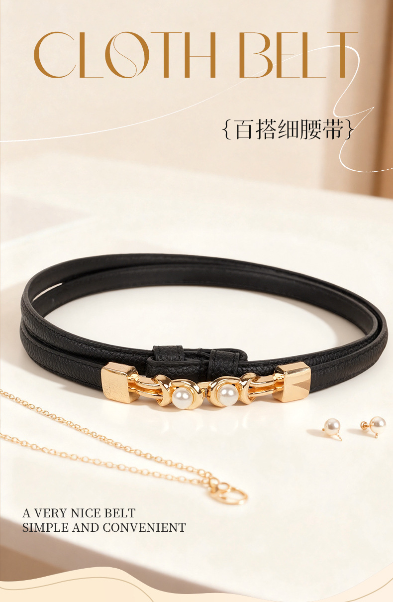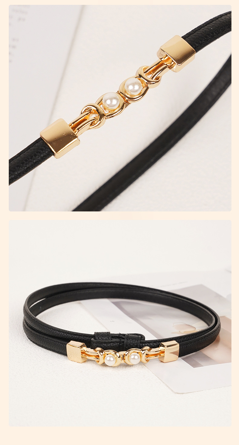 다용도 여성용 얇은 벨트, 패셔너블한 버클 장식, 드레스와 셔츠에 어울리는 허리끈, 진주 가죽 벨트, 고급스러운 느낌