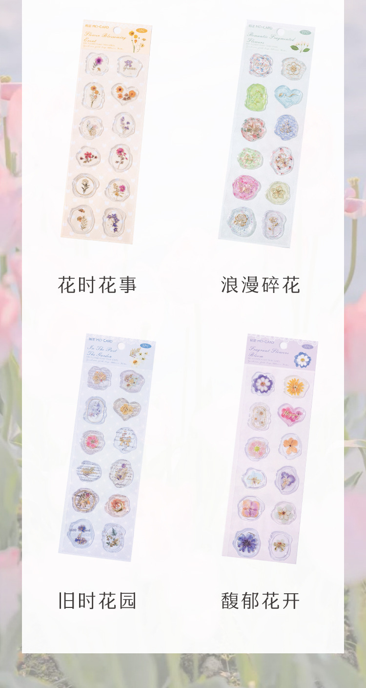 모 모 모 불 페인트 도금 에폭시 스티커 말린 꽃 식물 책 시리즈 신선한 꽃 저널 장식 재료 스티커스토어 가기