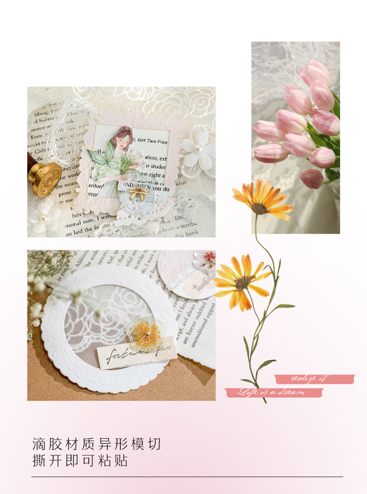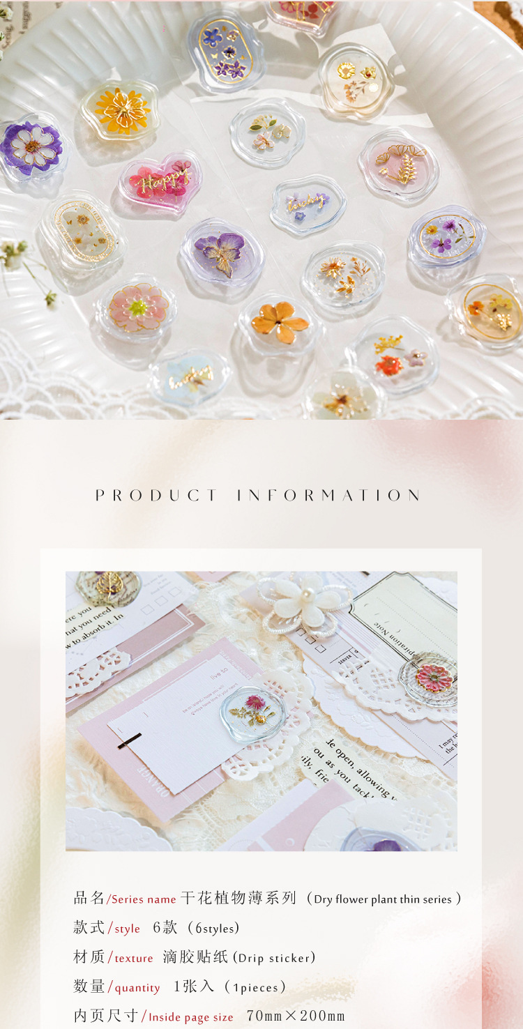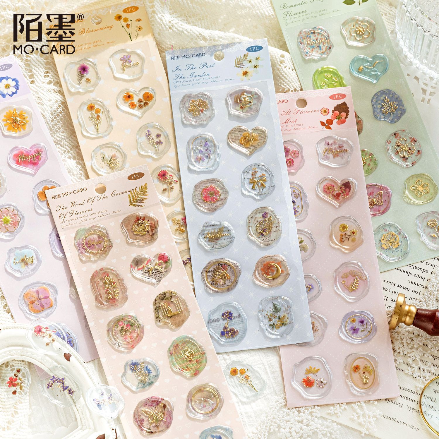 모 모 모 불 페인트 도금 에폭시 스티커 말린 꽃 식물 책 시리즈 신선한 꽃 저널 장식 재료 스티커