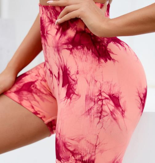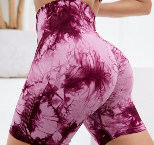 크로스보더 타이트한 고탄성 타이 염색 요가 팬츠, 하이웨이스트 힙 리프팅 요가 팬츠, 스포츠 피트니스 요가 반바지는 밖에서 착용 가능