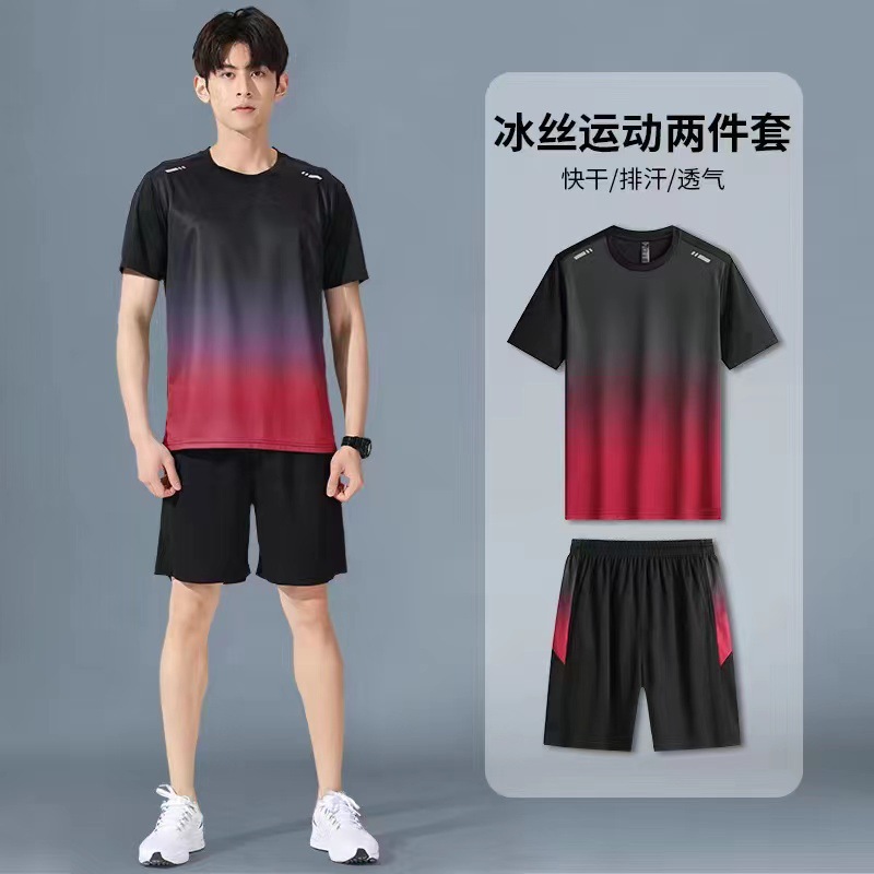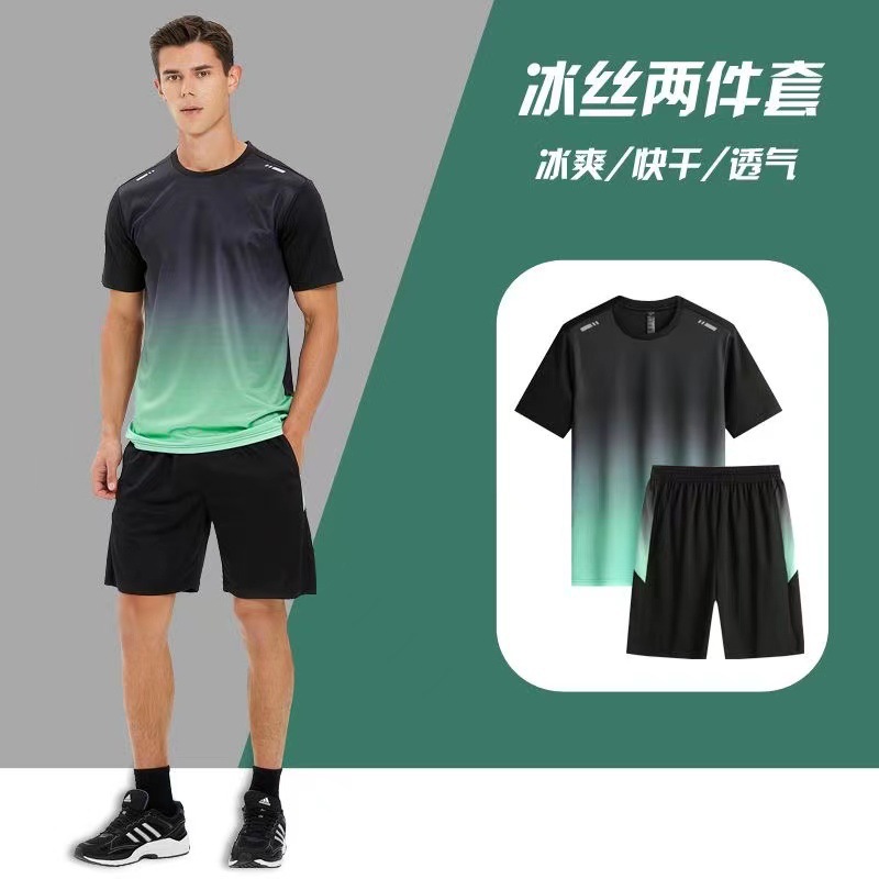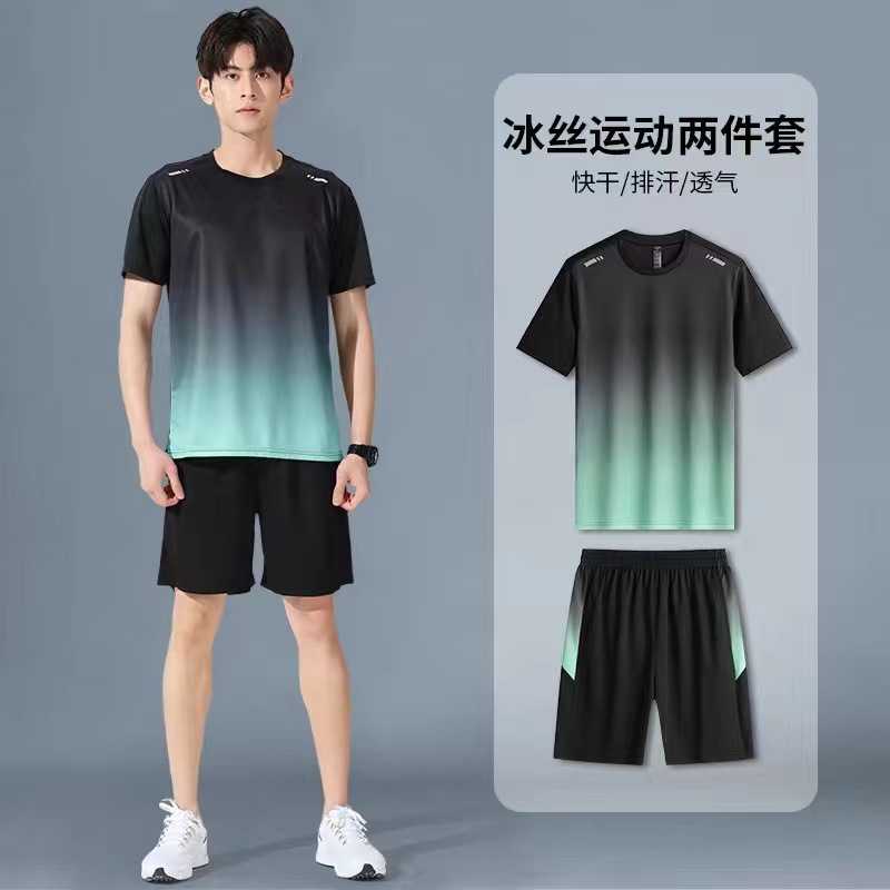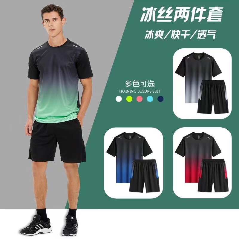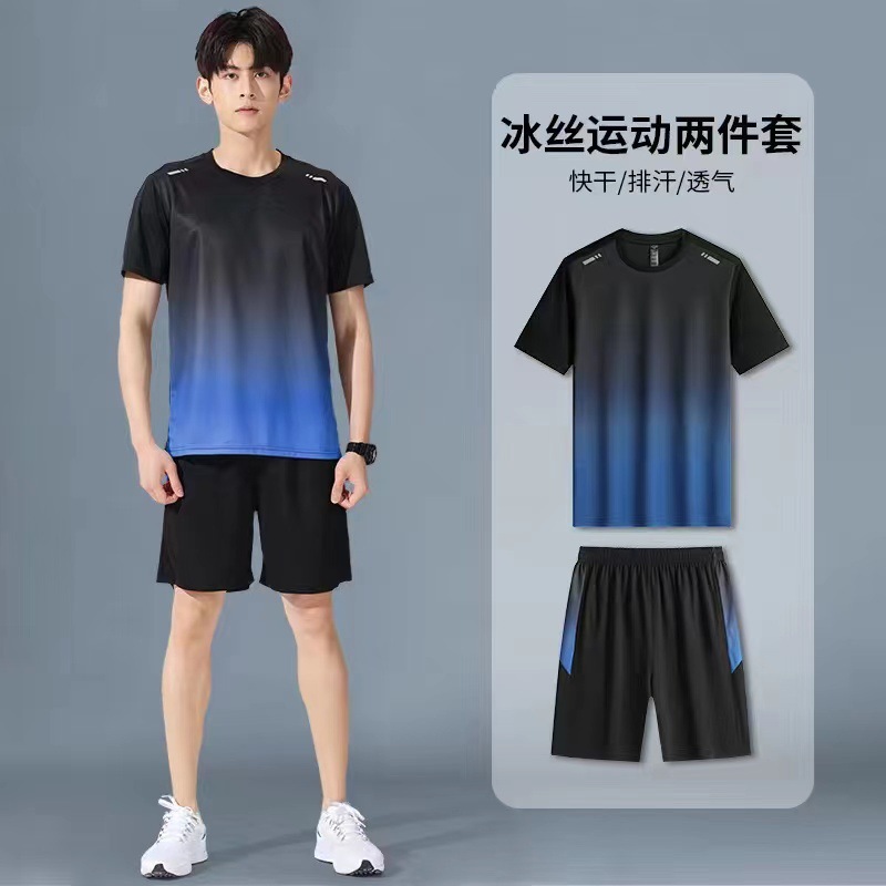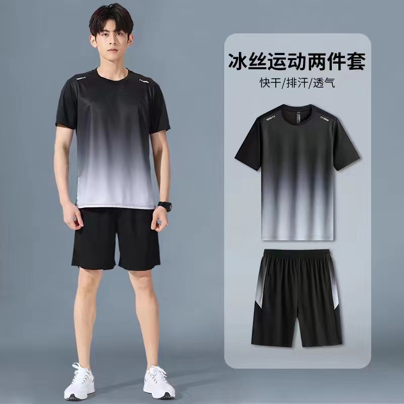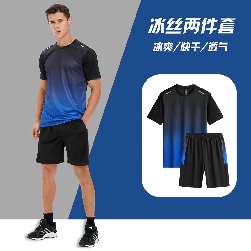 아이스 실크 캐주얼 세트 남성 반바지 여름 얇은 느슨한 올 매치 짧은 소매 스트레치 스포츠 반바지 투피스 세트스토어 가기