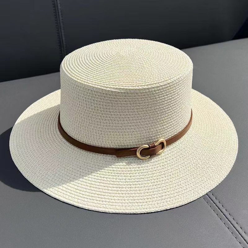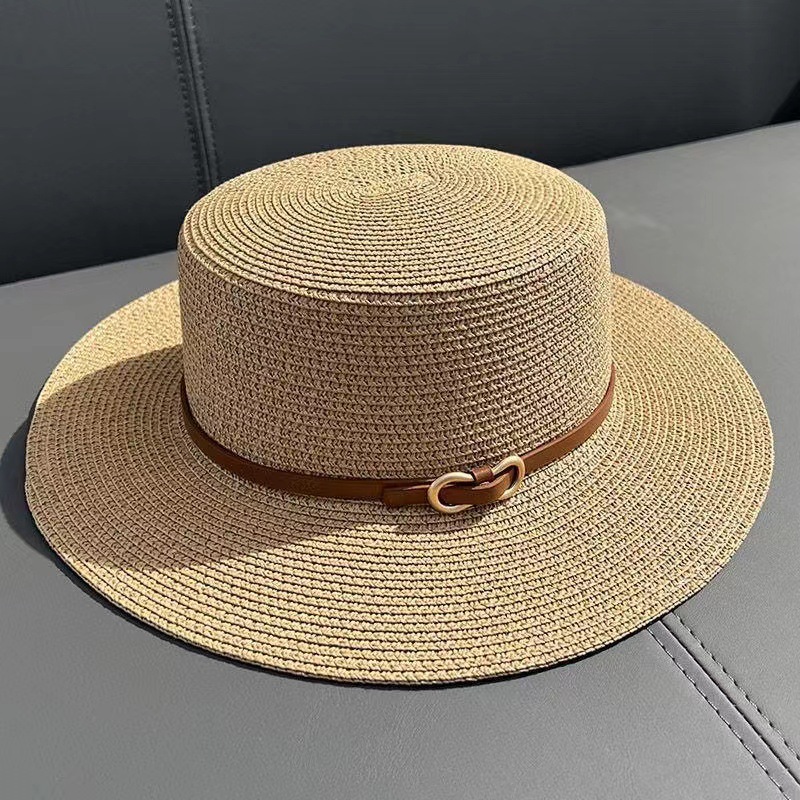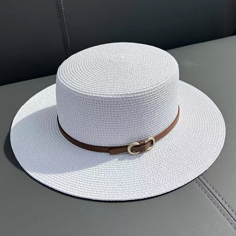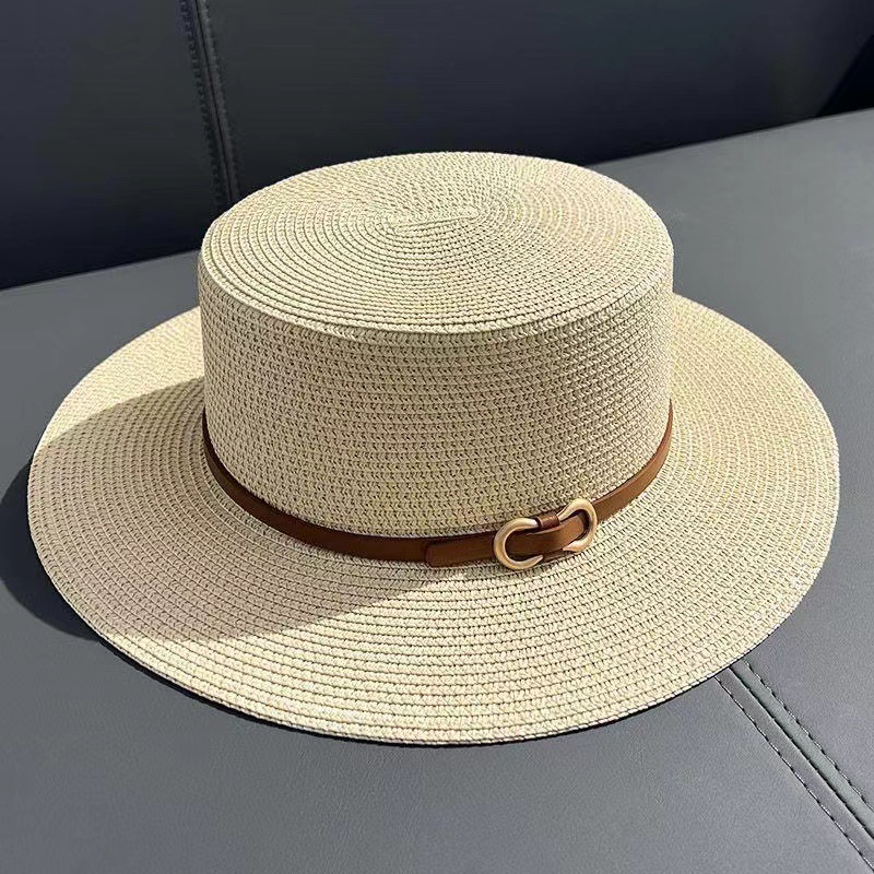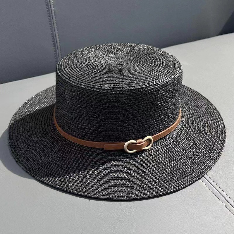 여성을위한 새로운 플랫 탑 밀짚 모자 여름 해변 해변 태양 방지 모자 그물 붉은 태양 시리즈 신선한 밀짚 모자 패션
