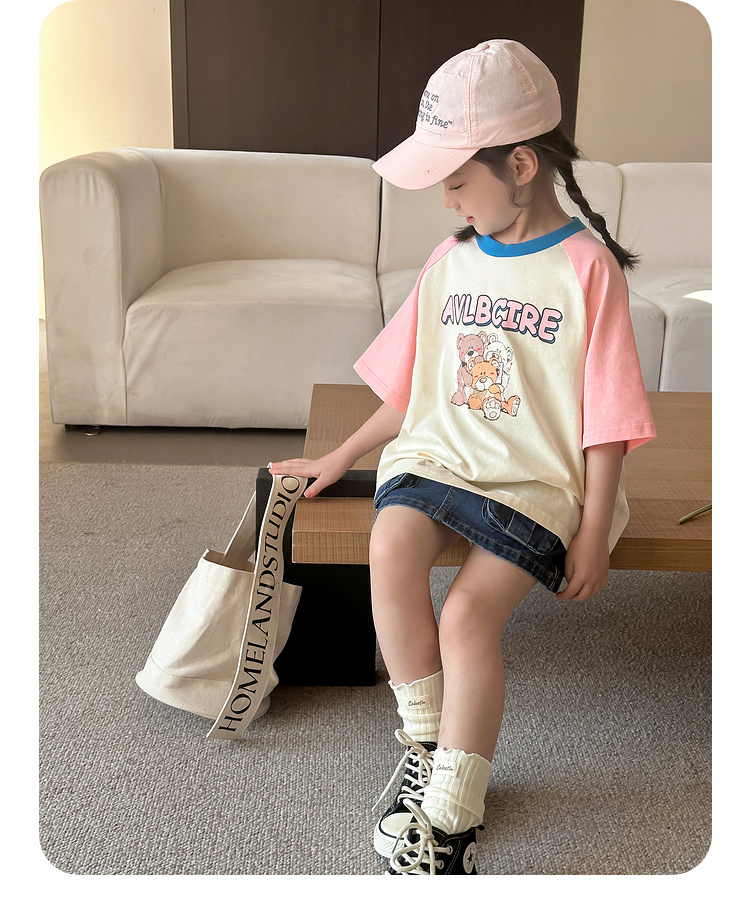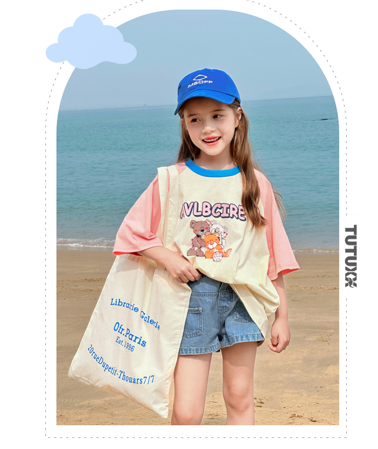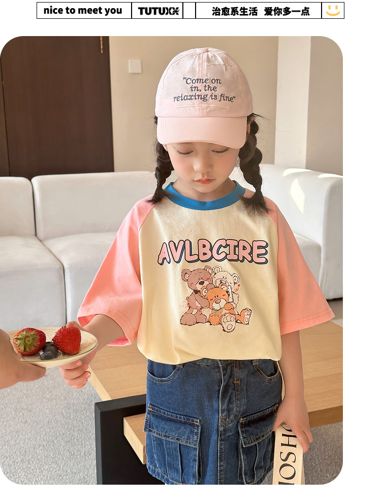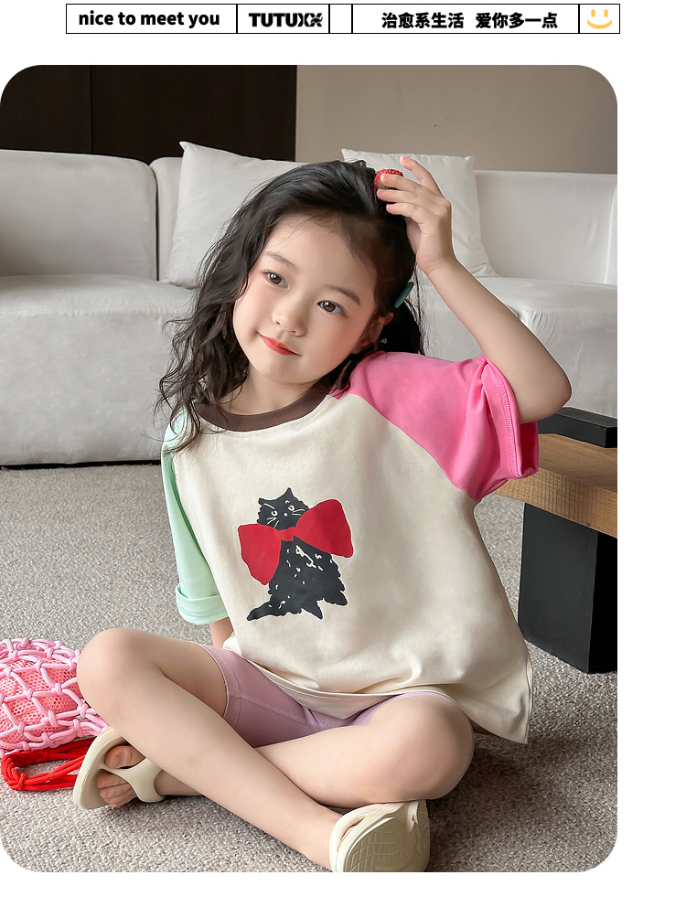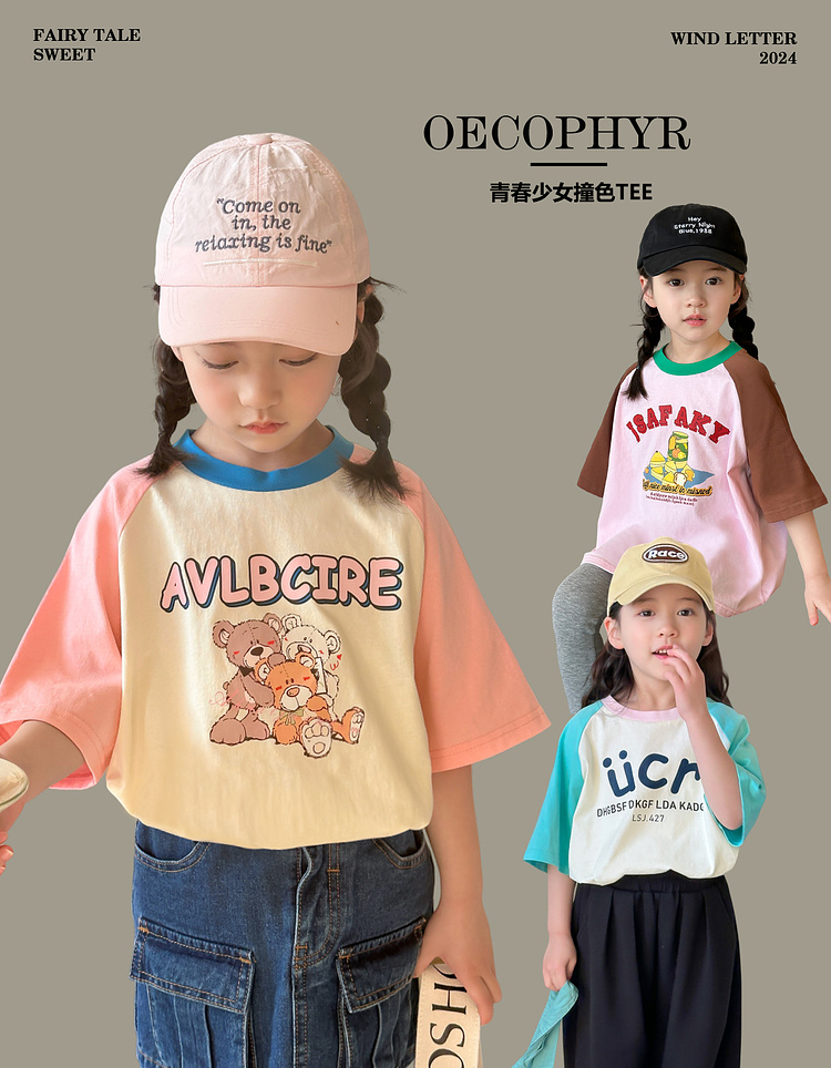 여자 반팔 2025 봄, 여름 새로운 캐주얼 베이비 탑 만화 어린이 바닥 셔츠 한국 스타일 아동 의류 긴 소매스토어 가기