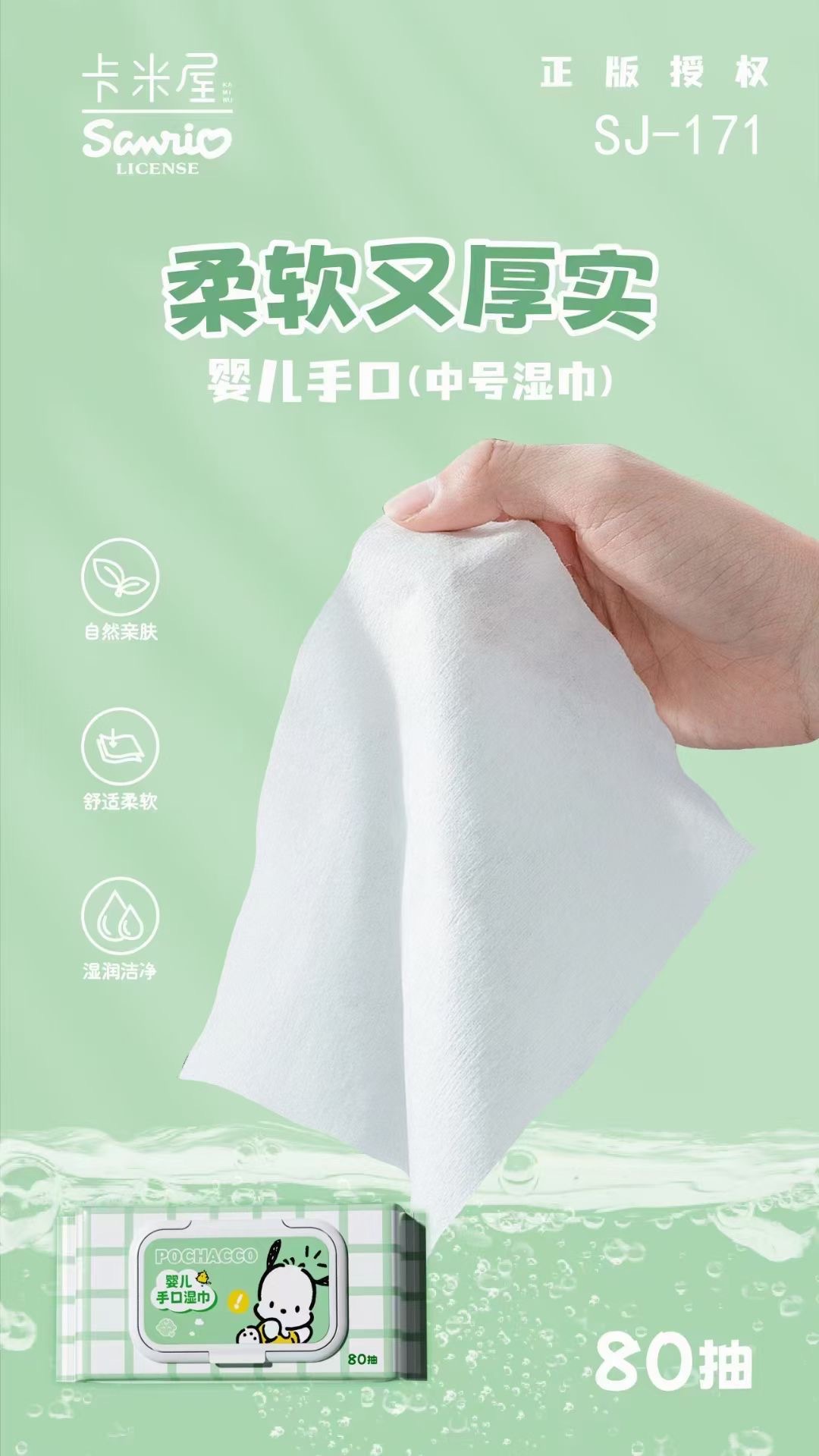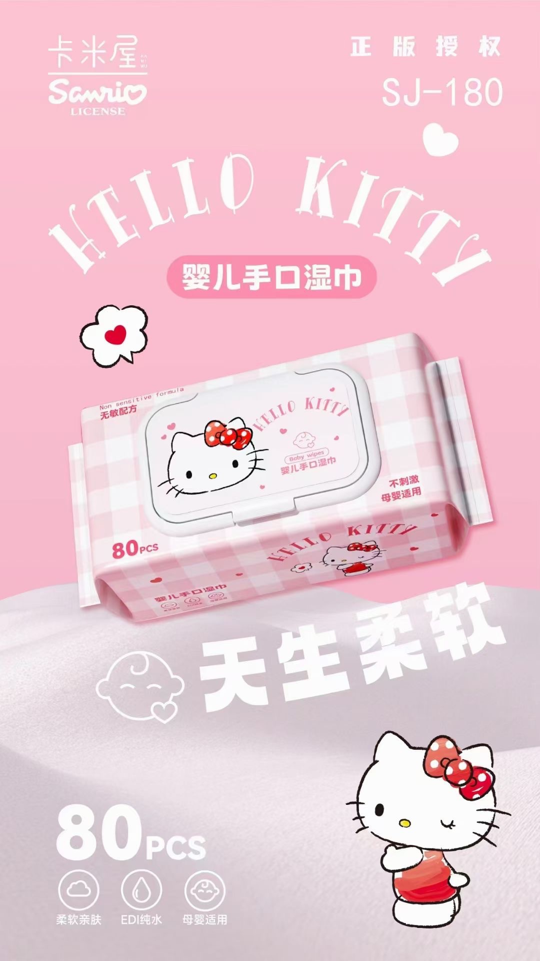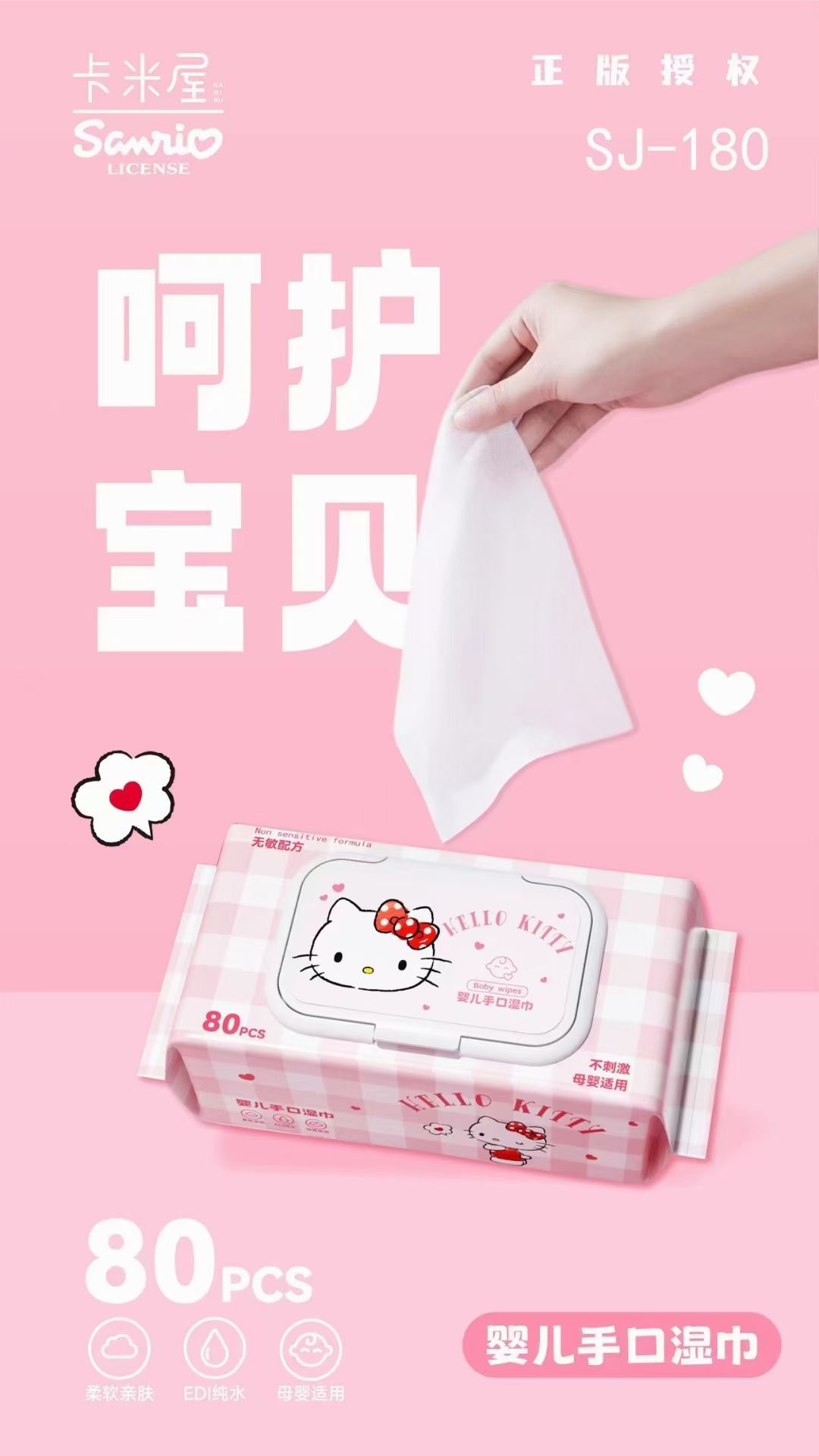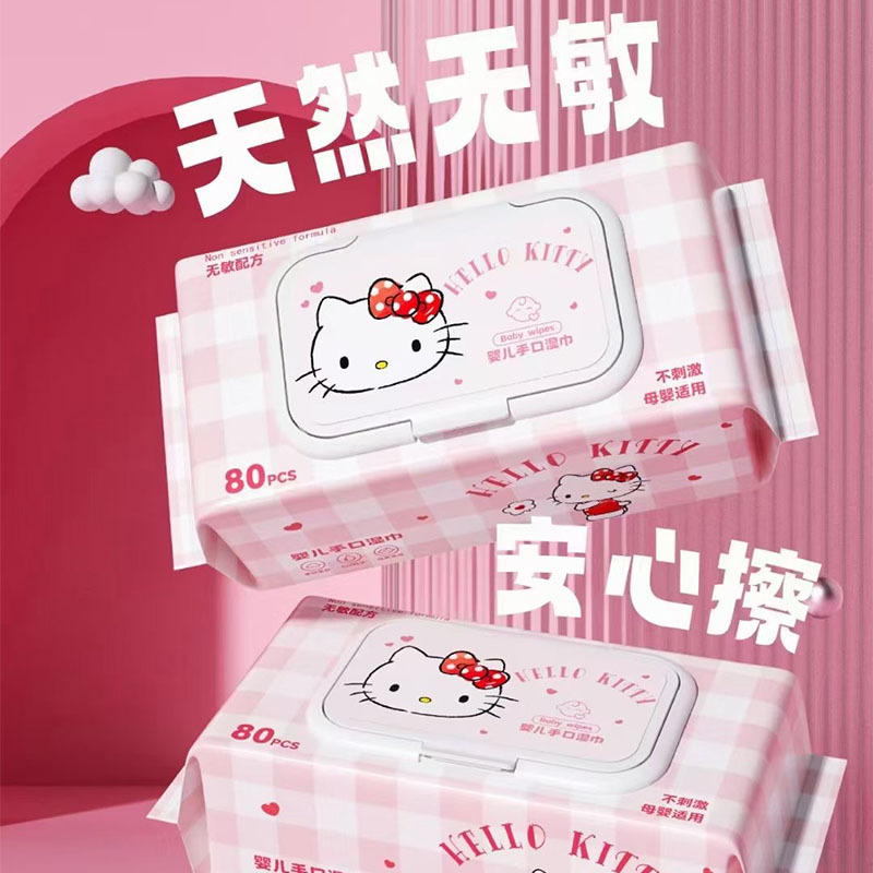 Sanrio 아기 손 물티슈 80 펌핑 두꺼운 여분의 큰 진짜 승인 된 순수한 물티슈 공장 도매 물티슈스토어 가기