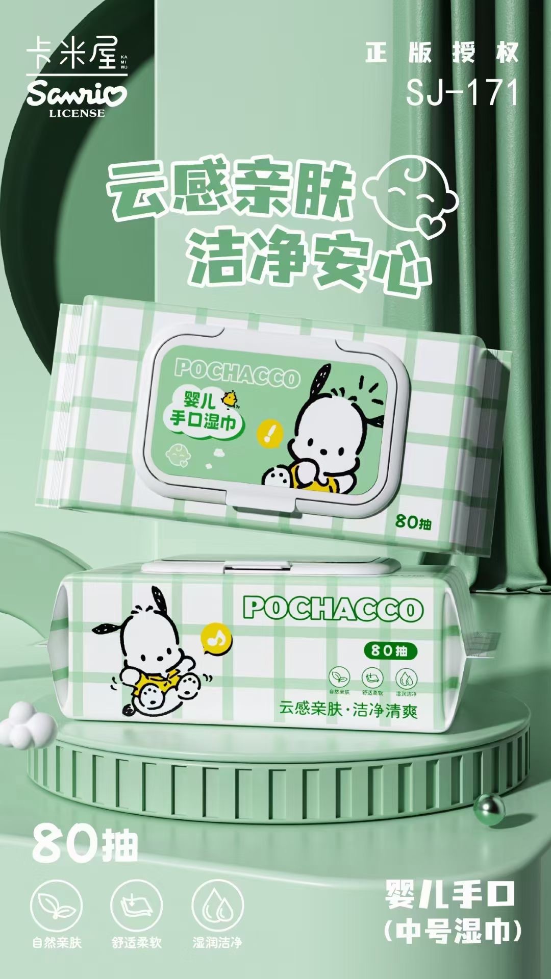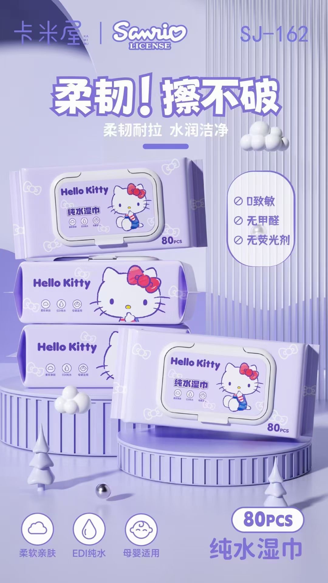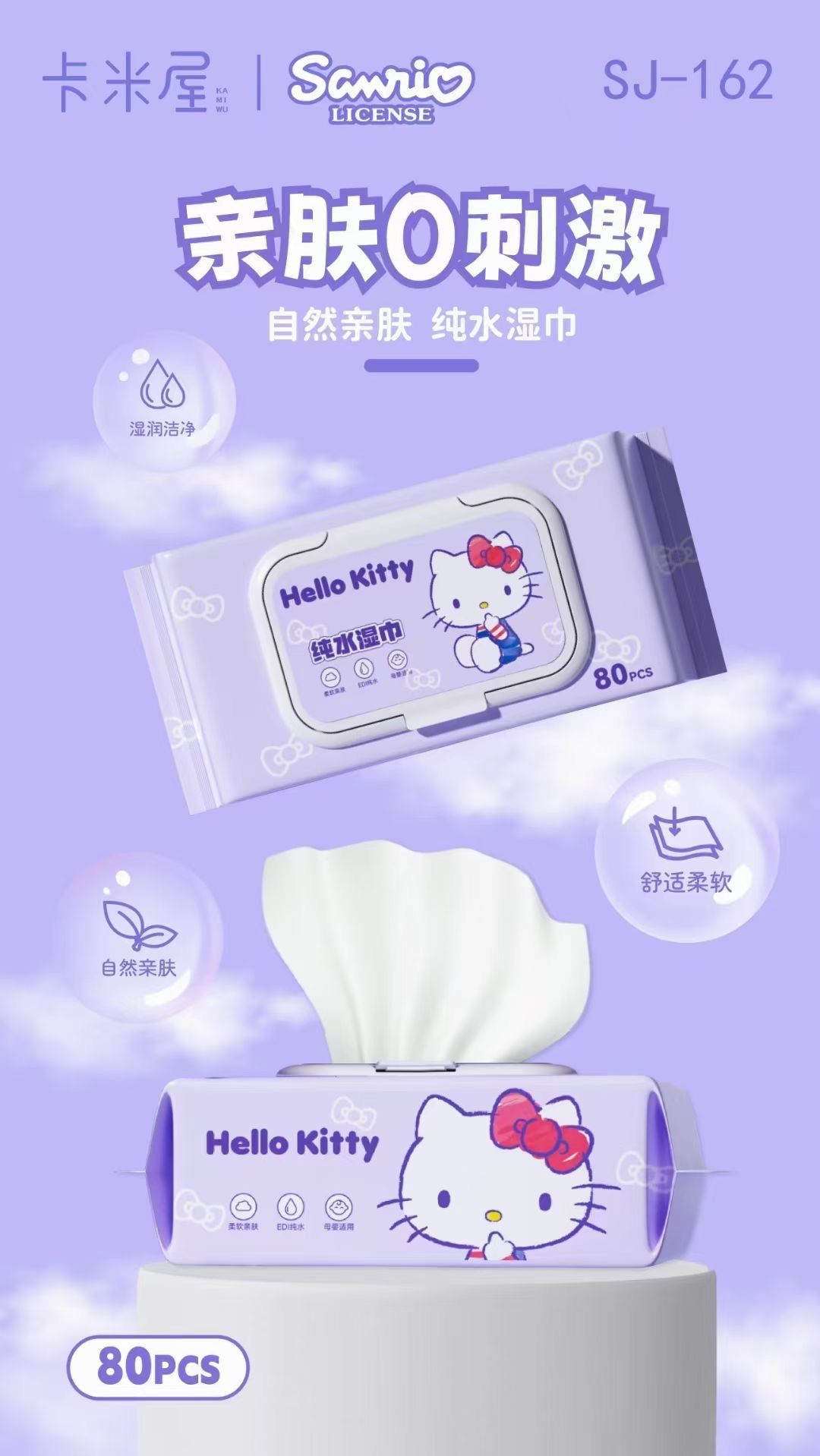 Sanrio 아기 손 물티슈 80 펌핑 두꺼운 여분의 큰 진짜 승인 된 순수한 물티슈 공장 도매 물티슈스토어 가기