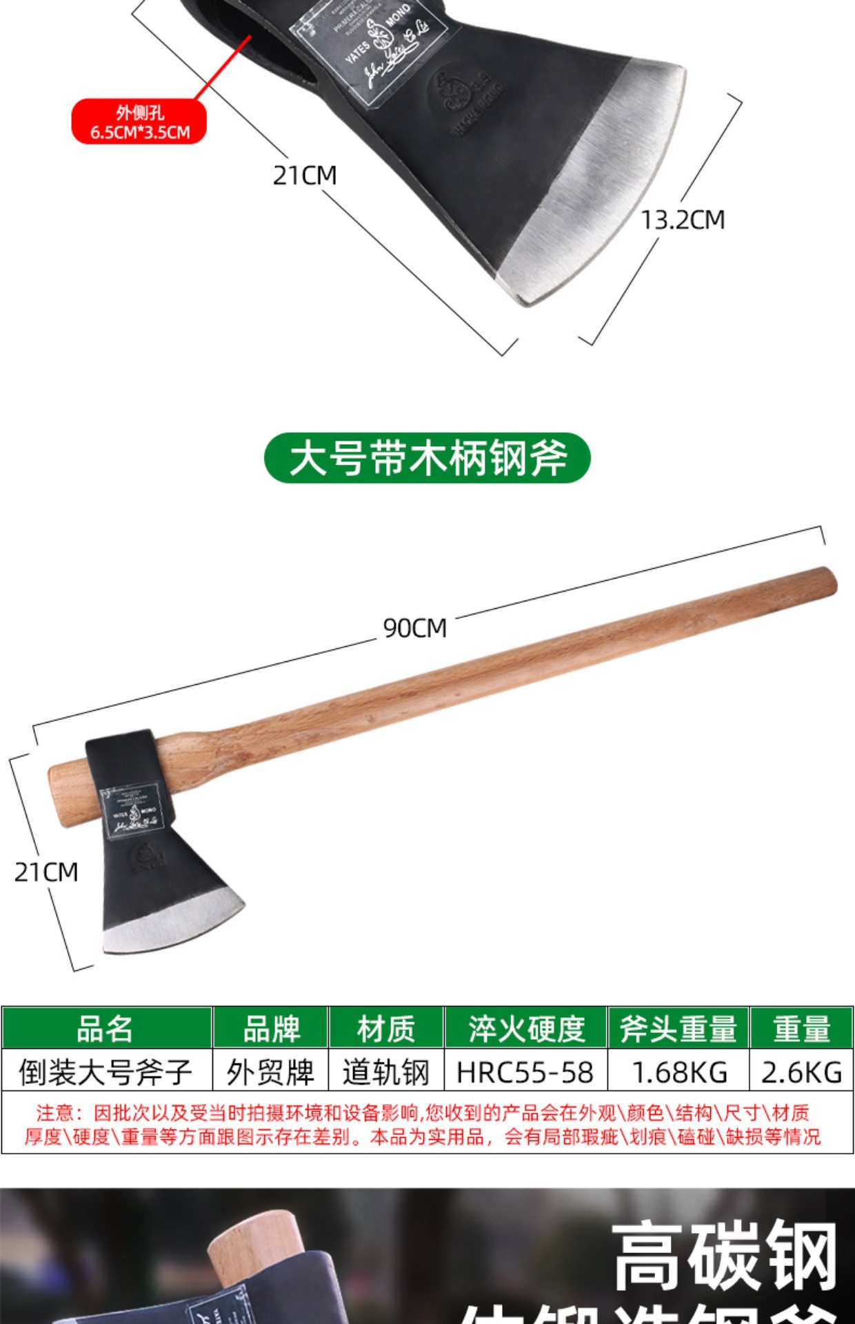 대외 무역 버전 대형 목재 핸들 도끼 야외 절단 도끼 오픈 마운틴 도끼 화재 도끼 나무 분할 플립 다운 핸들 로깅 도끼스토어 가기