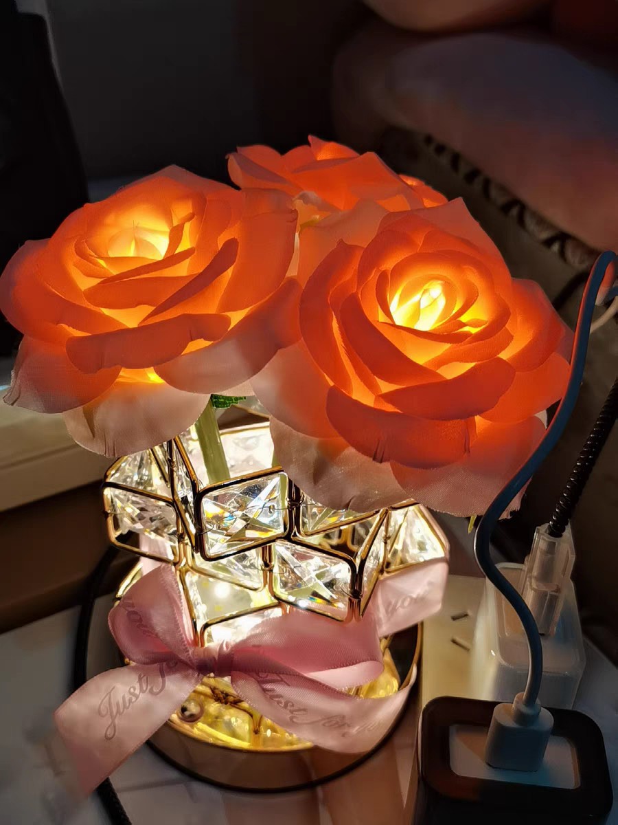 소녀 여자 친구를위한 로즈 큐브 분위기 테이블 램프 야간 조명 생일 발렌타인 데이 선물 고급 장식