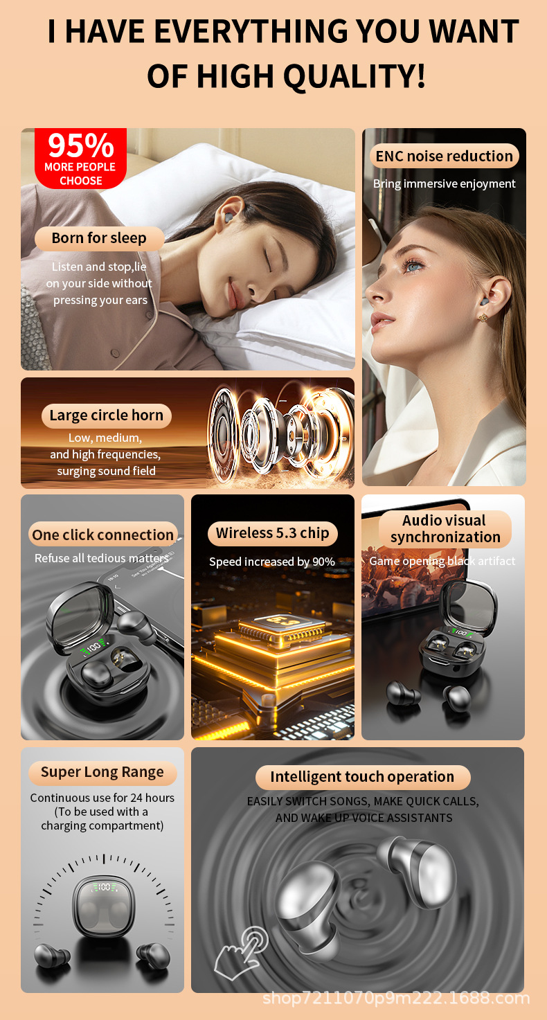 초소형 수면 무선 블루투스 헤드셋 초박형 고통없는 측면 수면 편안한 초장 내구성 소음 감소 초저 지연스토어 가기