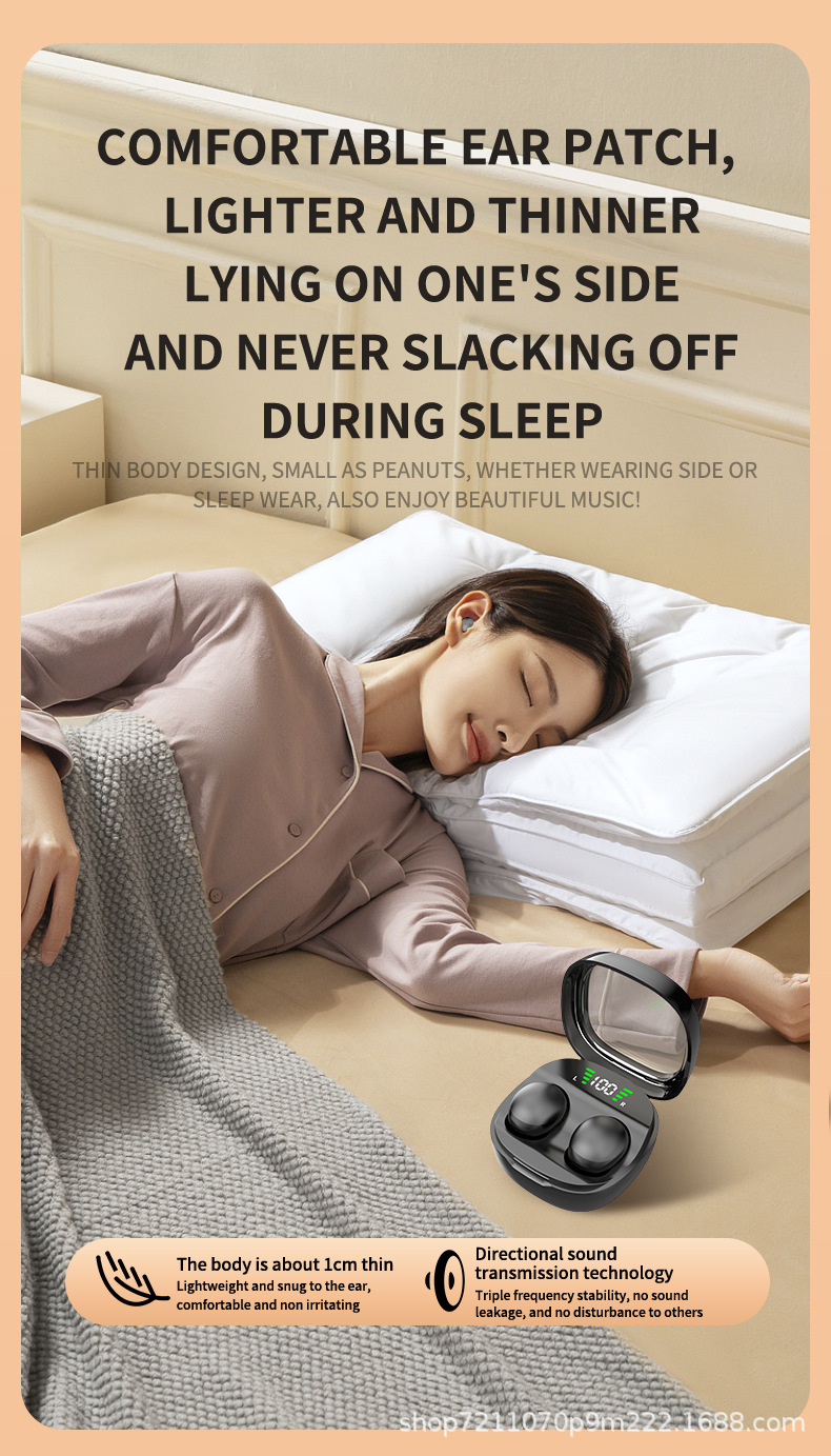 초소형 수면 무선 블루투스 헤드셋 초박형 고통없는 측면 수면 편안한 초장 내구성 소음 감소 초저 지연