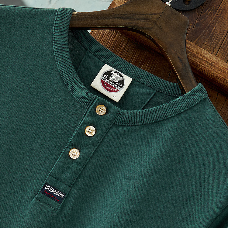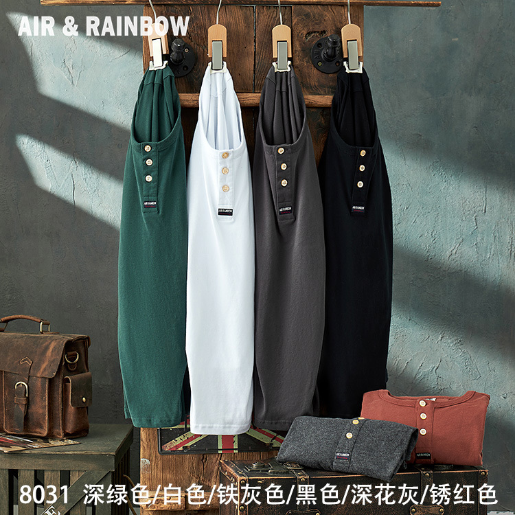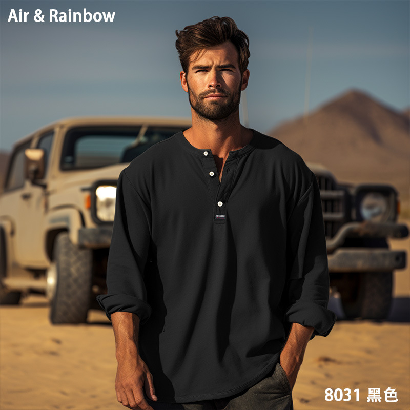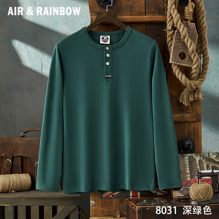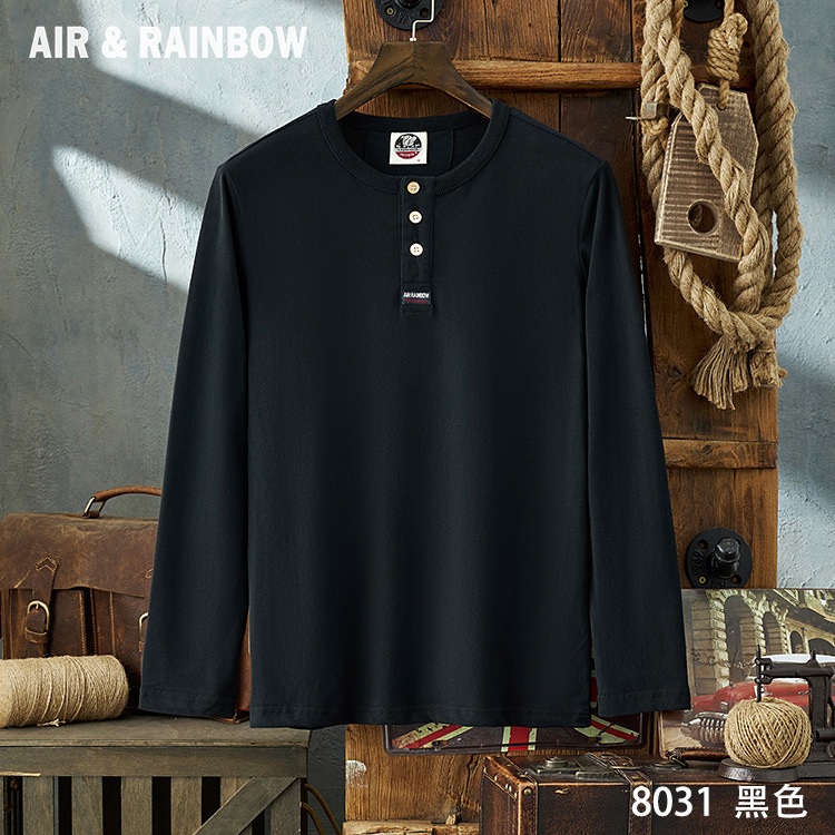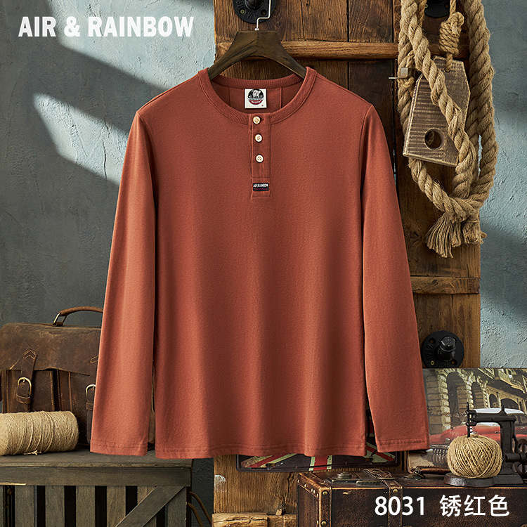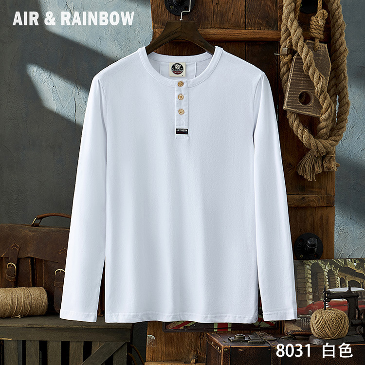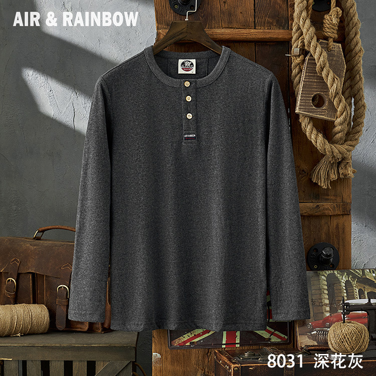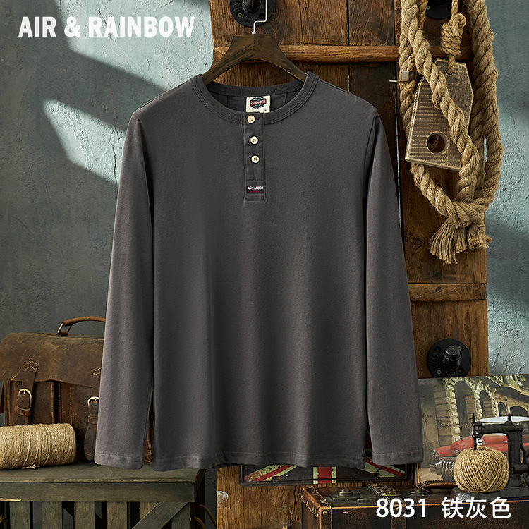 레트로 심플 루즈 솔리드 컬러 캐주얼 버튼 긴팔 티셔츠 남성 유럽과 미국의 바닥 셔츠 8031 캐주얼하고 다재다능함