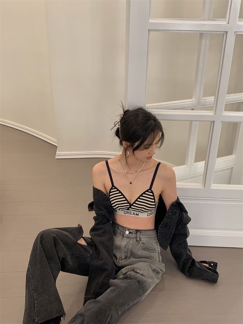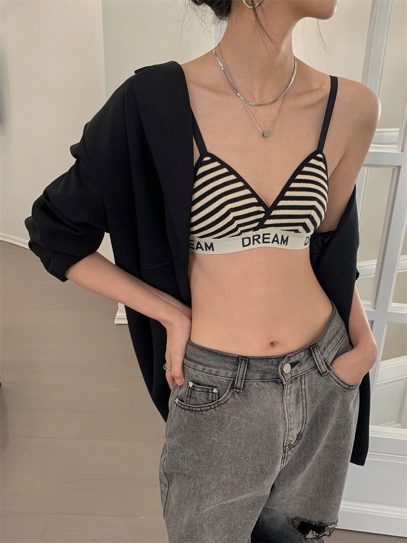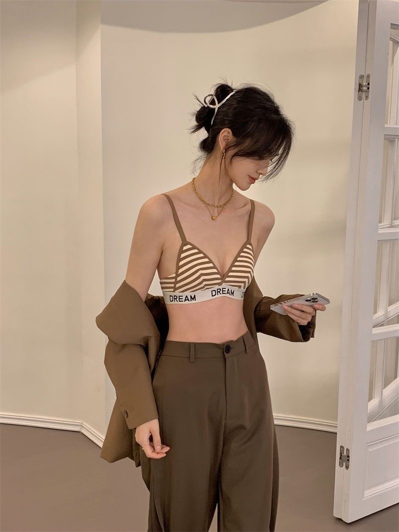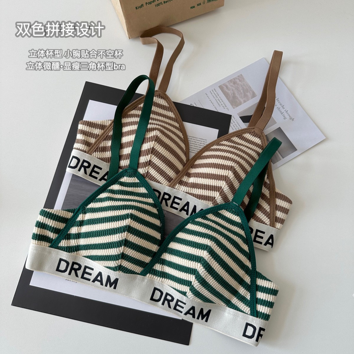 삼각형 컵 속옷 큰 가슴 작은 무선 얇은 뒤 브래지어 섹시한 푸시 업 새로운 줄무늬 브래지어 세트스토어 가기