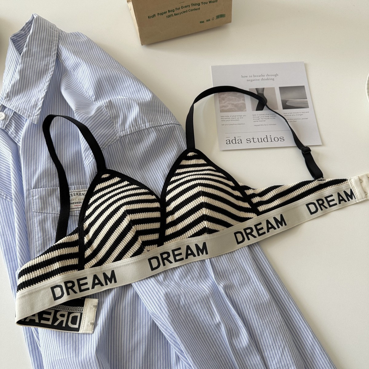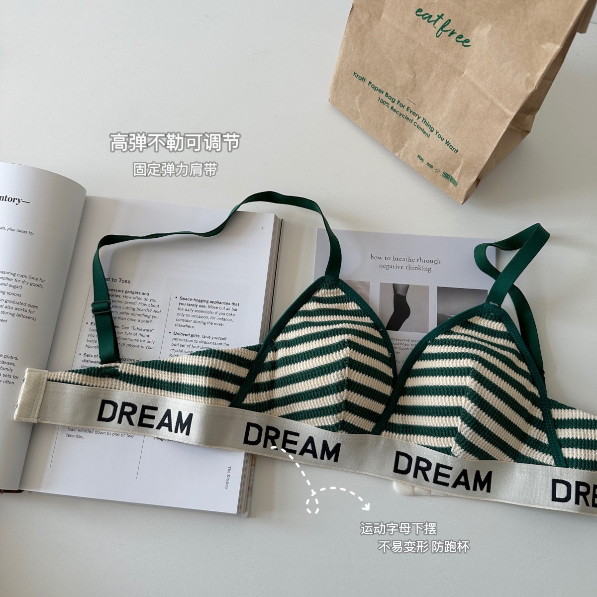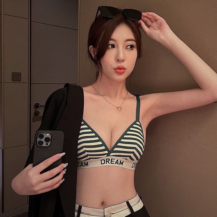 삼각형 컵 속옷 큰 가슴 작은 무선 얇은 뒤 브래지어 섹시한 푸시 업 새로운 줄무늬 브래지어 세트