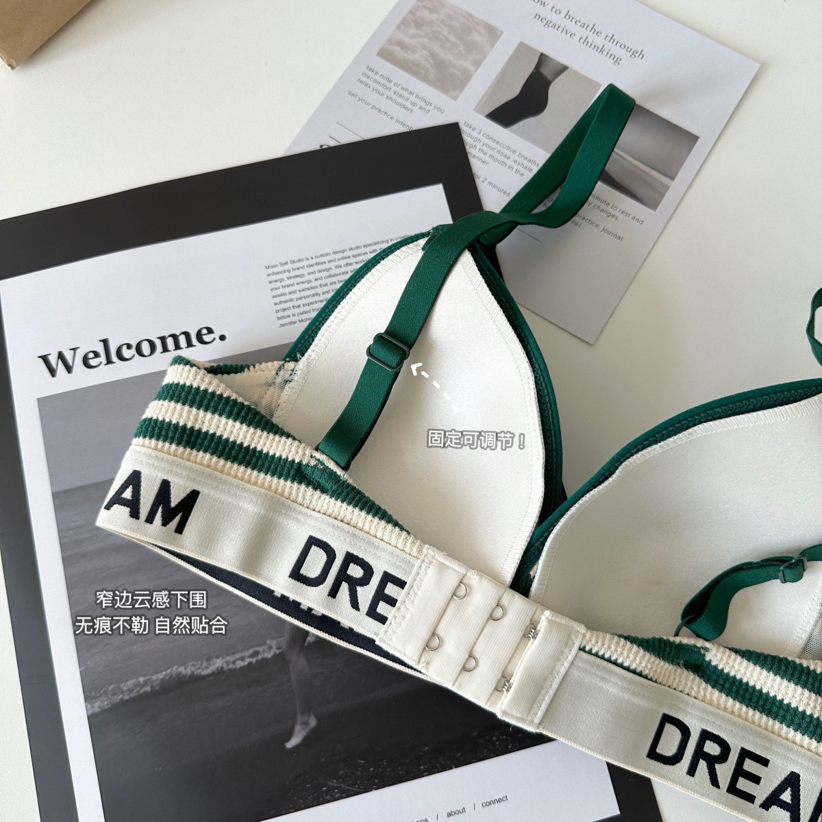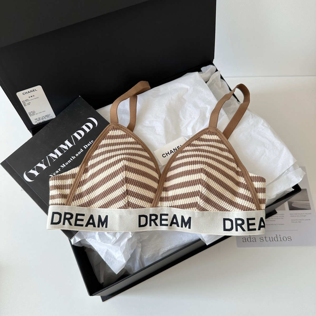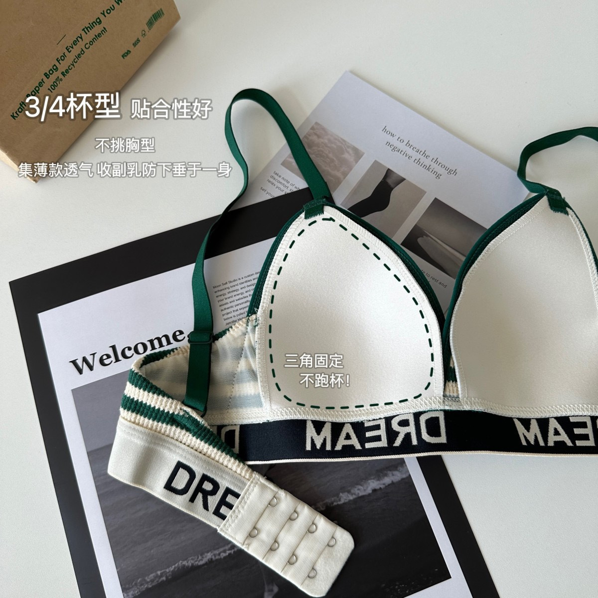 삼각형 컵 속옷 큰 가슴 작은 무선 얇은 뒤 브래지어 섹시한 푸시 업 새로운 줄무늬 브래지어 세트