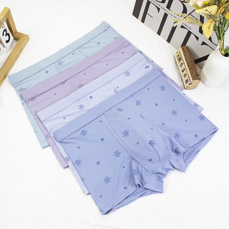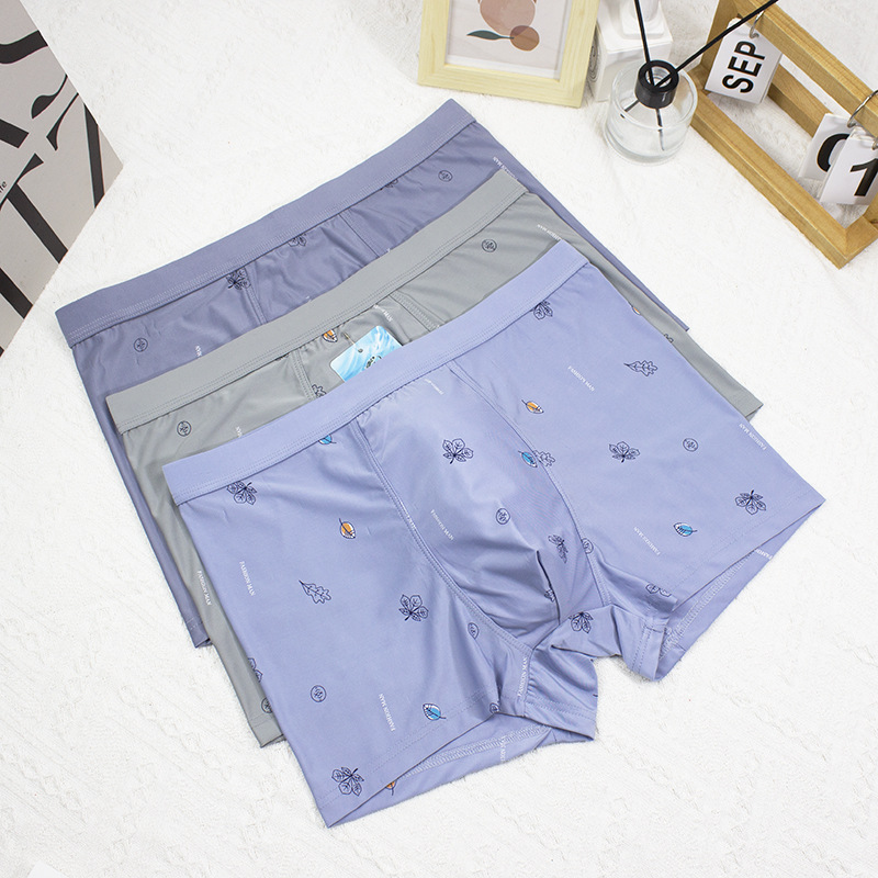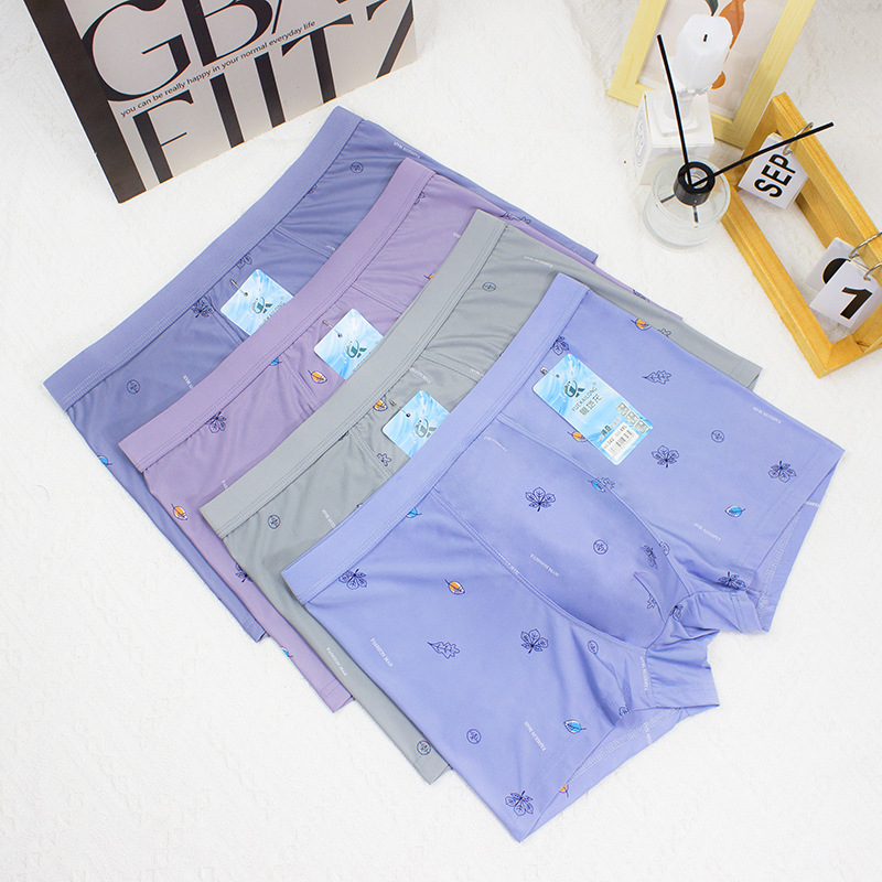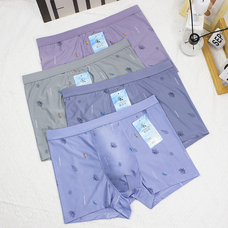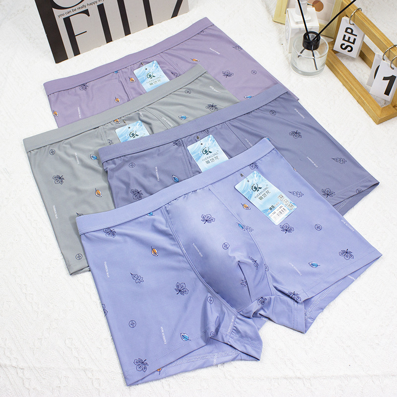 2024 봄과 여름 새로운 남성 아이스 실크 속옷 남성 플러스 사이즈 중간 허리 인쇄 얇은 청소년 반바지 머리 공장 직접 판매스토어 가기