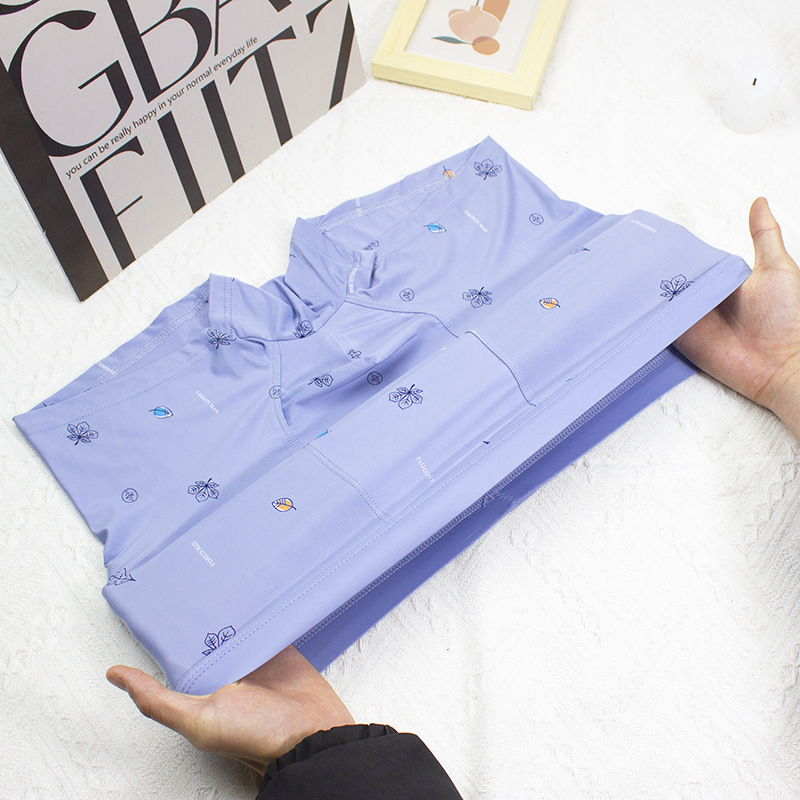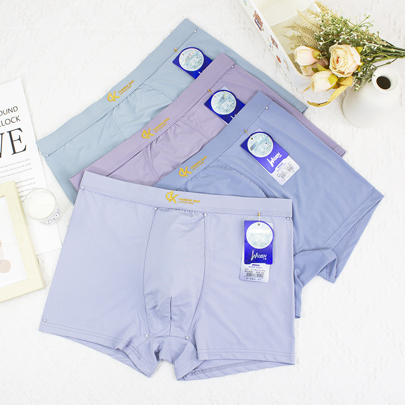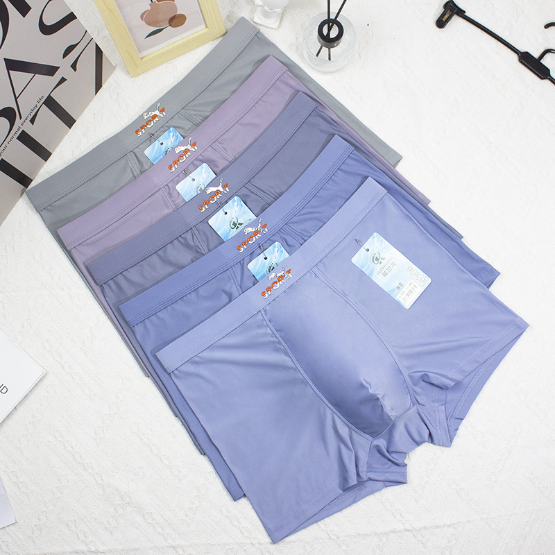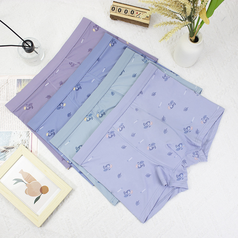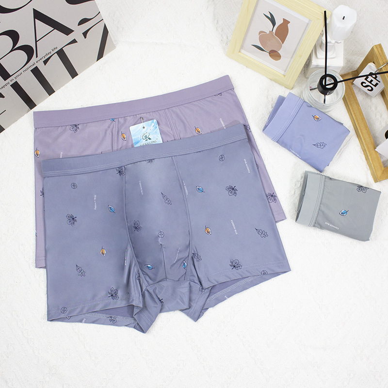 2024 봄과 여름 새로운 남성 아이스 실크 속옷 남성 플러스 사이즈 중간 허리 인쇄 얇은 청소년 반바지 머리 공장 직접 판매스토어 가기