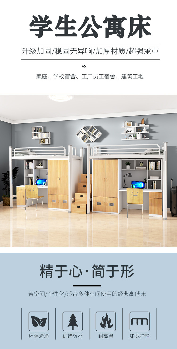 침대 조합 침대 아래 침대 대학생 직원 기숙사 침대 학교 침실 나무 높은 침대 시트 상부 아파트 침대스토어 가기