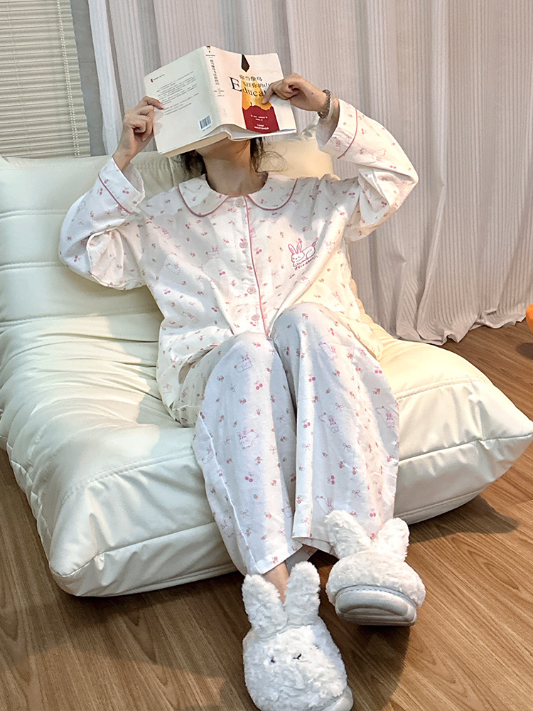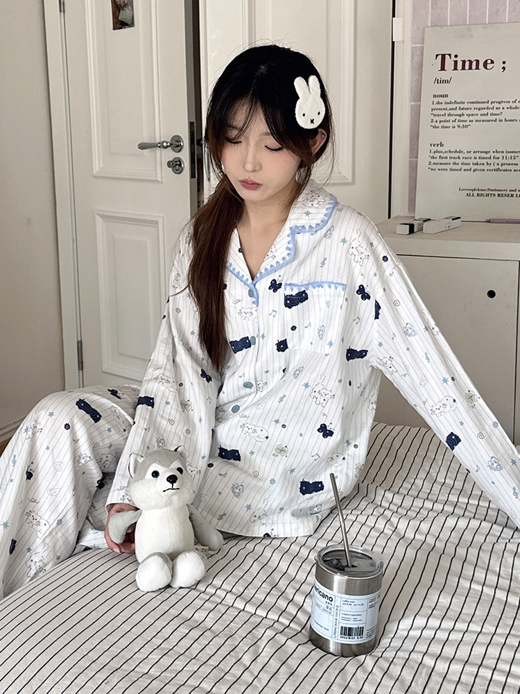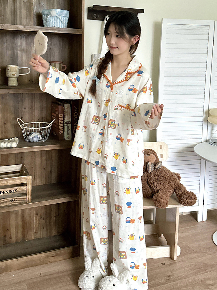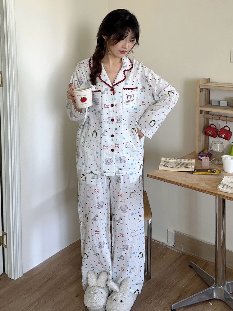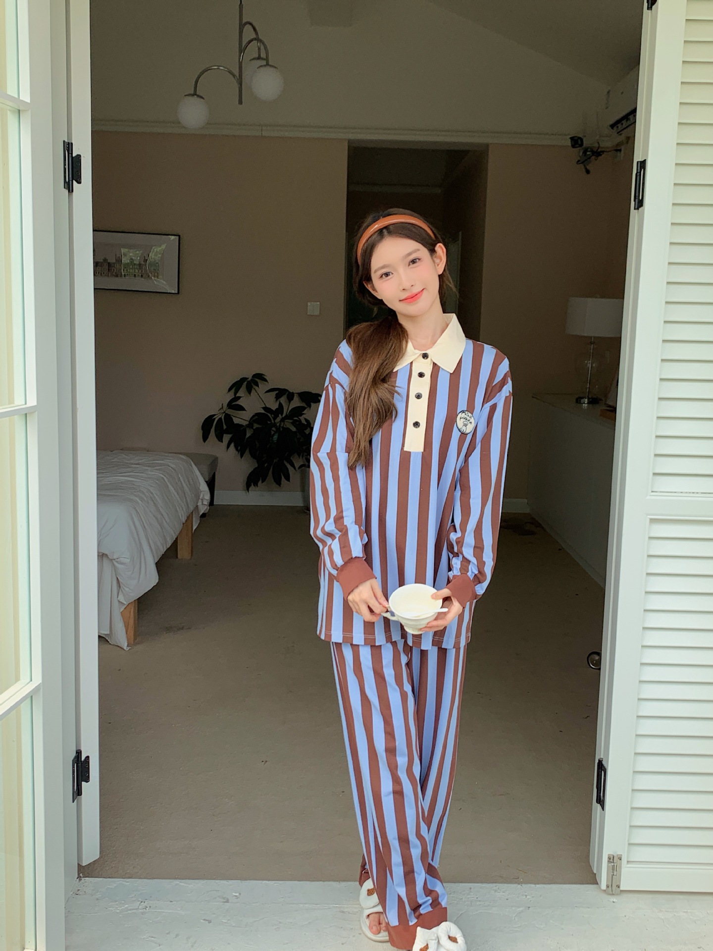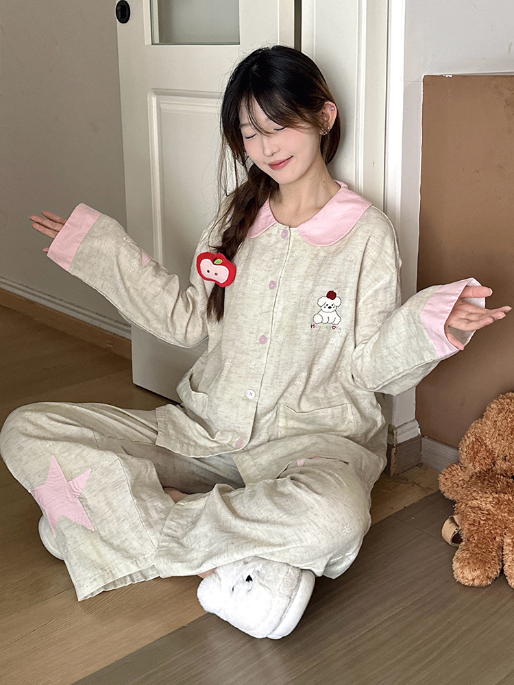 2024 봄과 여름 새 커플 면 잠옷 한국면 홈 웨어는 단순한 세트 남성과 여성 밖에서 착용 할 수 있습니다.스토어 가기