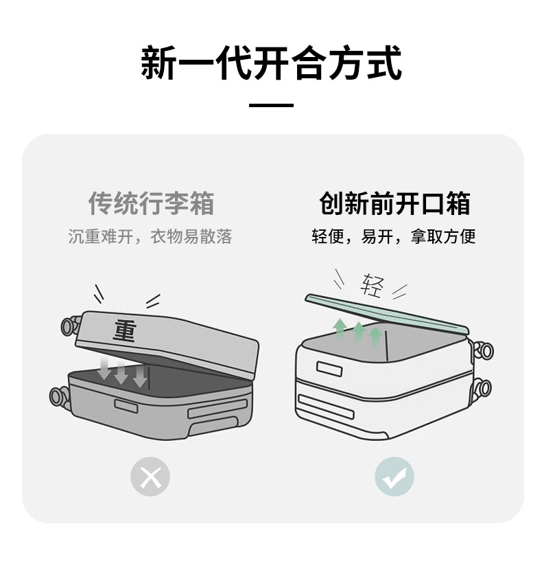 전면 개방 넓은 트롤리 수하물 비밀번호 여행 가방 남성 및 여성 비즈니스 탑승 케이스 강력하고 내구성있는 학생스토어 가기