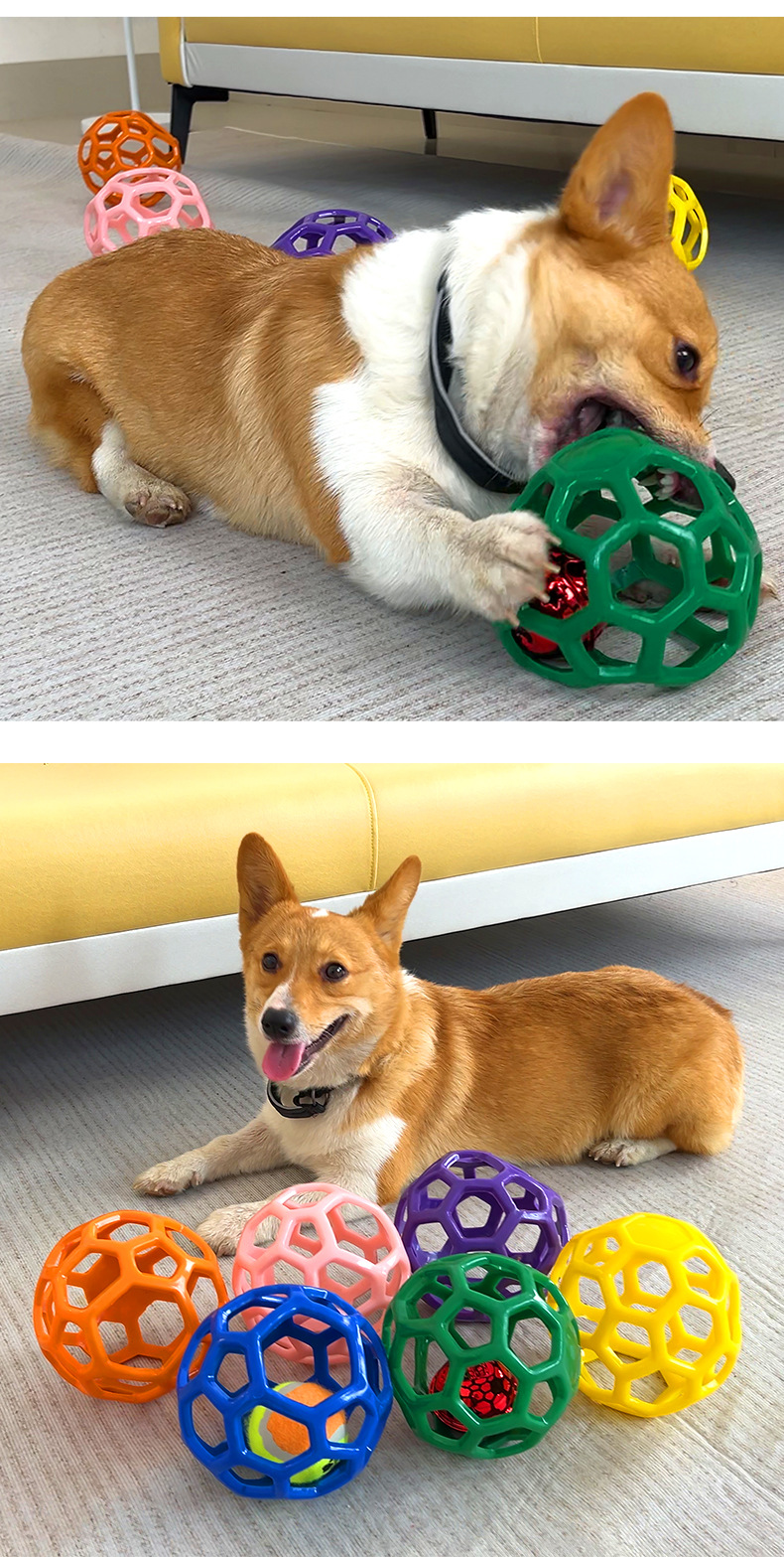 애완 동물 속이 빈 장난감 공 내장 벨 테니스 빨 수있는 인터랙티브 플레이 퍼즐 공 말 먹이 공 숨기기 공스토어 가기