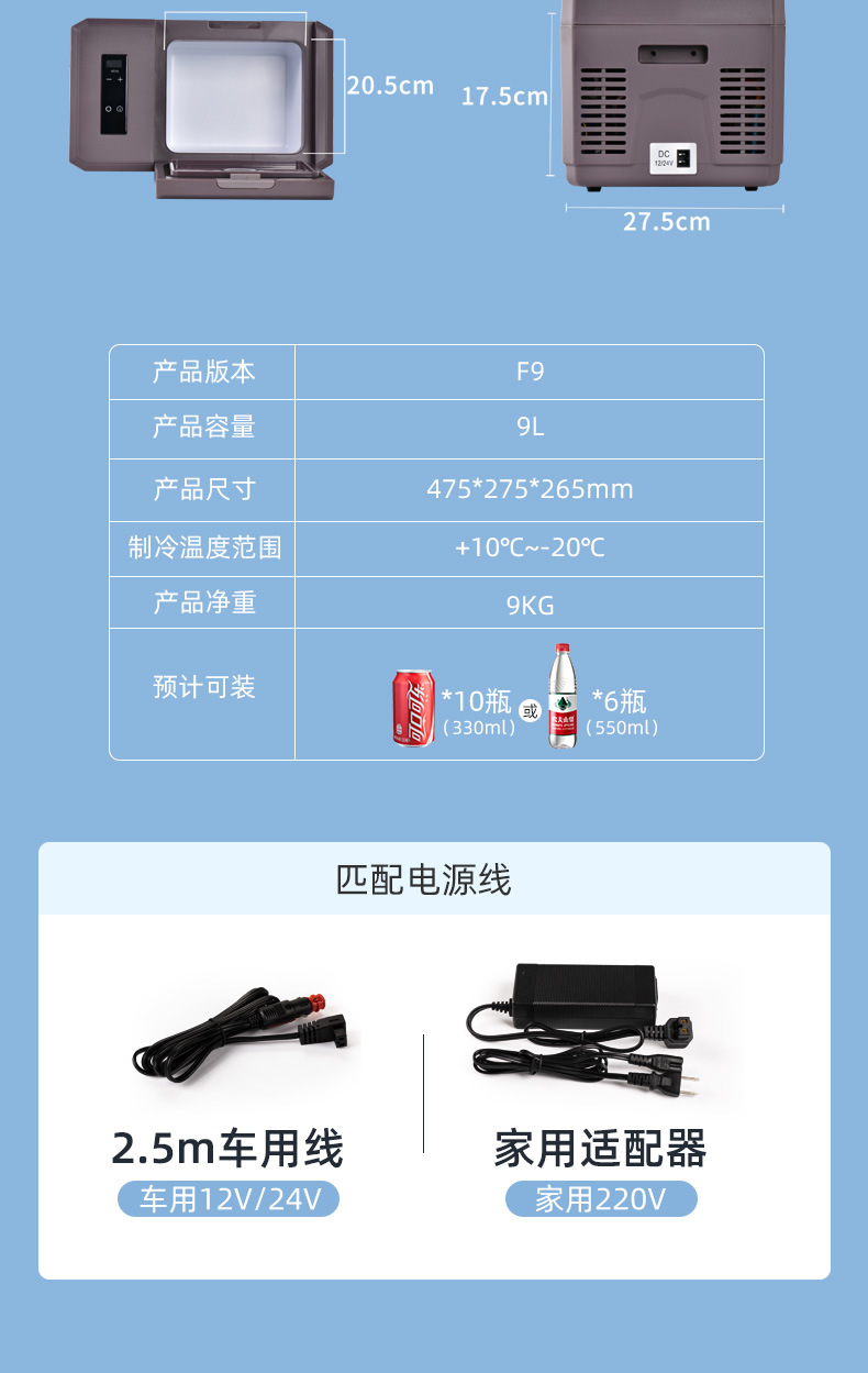 9 리터 압축기 자동차 냉장고 미니 자동차 냉장고 자동차 트럭 특별한 디지털 온도 제어-20 도스토어 가기