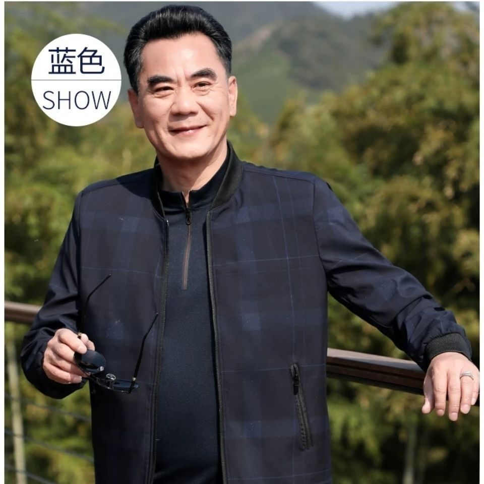 중년 남성 자켓 봄과 가을 중년 및 노인 남성을위한 얇은 캐주얼 재킷 야구 칼라 아빠 봄 재킷
