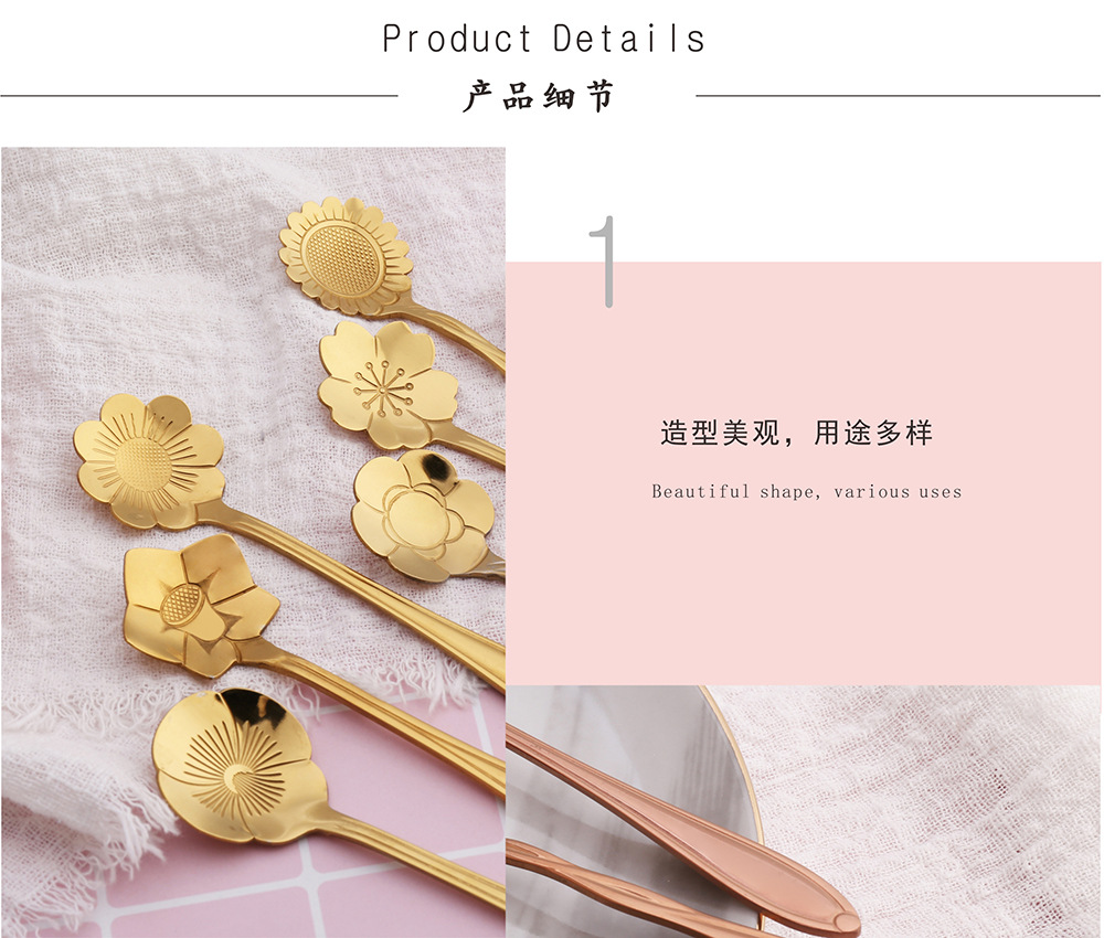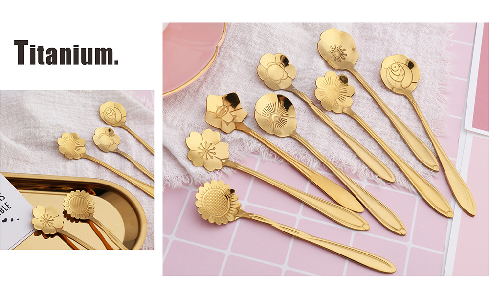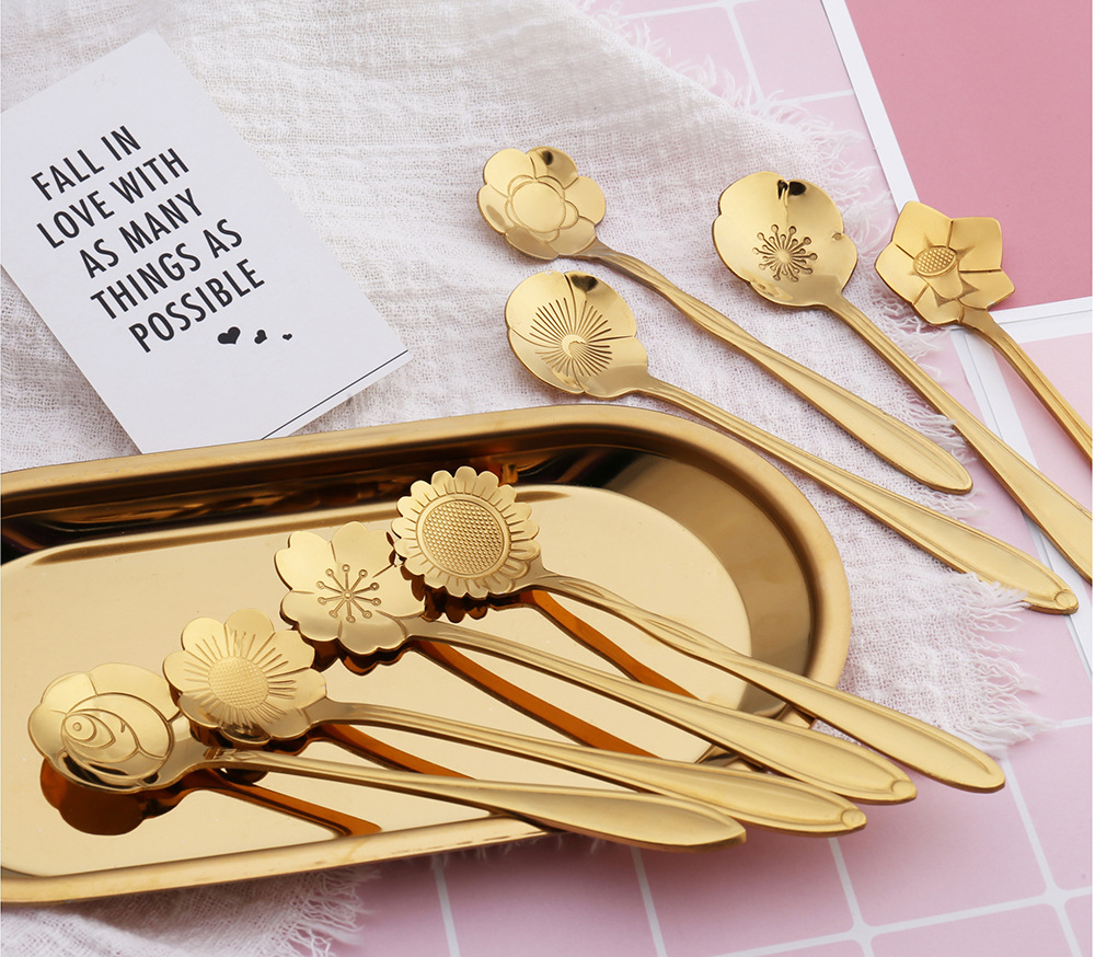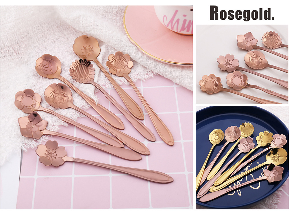 사쿠라 스푼 스테인레스 스틸 스푼 크리 에이 티브 금도금 식기 로즈 커피 스푼 기념품 꿀 교반 스푼스토어 가기