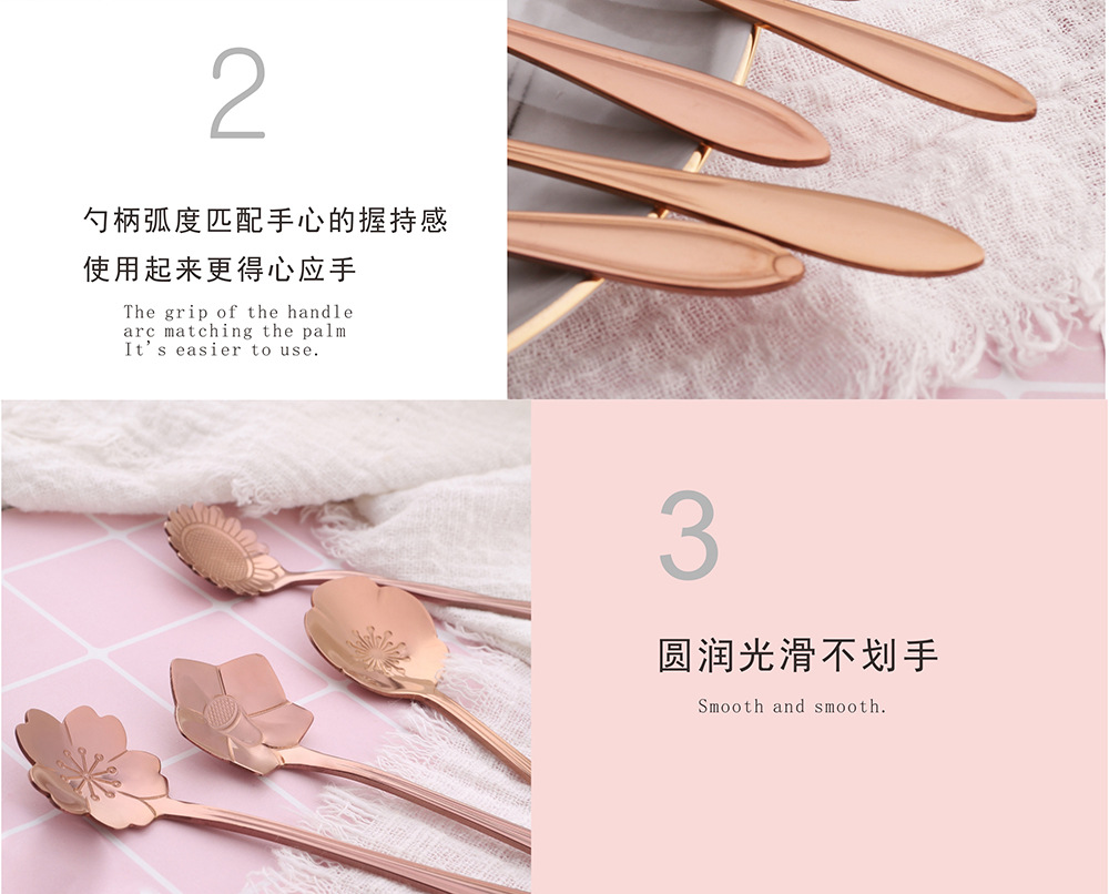 사쿠라 스푼 스테인레스 스틸 스푼 크리 에이 티브 금도금 식기 로즈 커피 스푼 기념품 꿀 교반 스푼