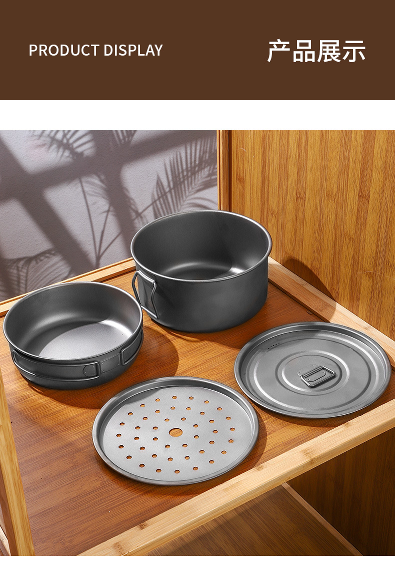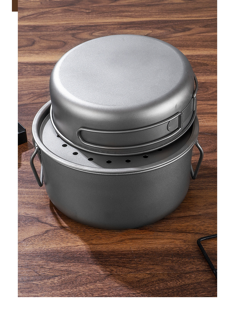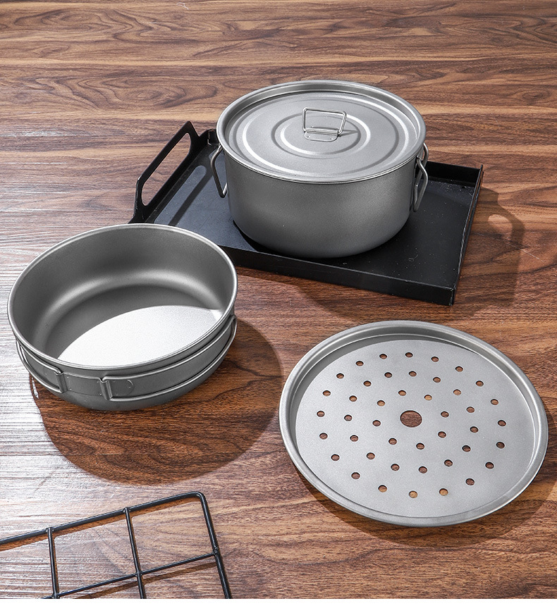 순수한 티타늄 야외 프라이팬 피크닉 캠핑 조합 식기 접이식 경량 휴대용 수프 냄비 프라이팬 세트