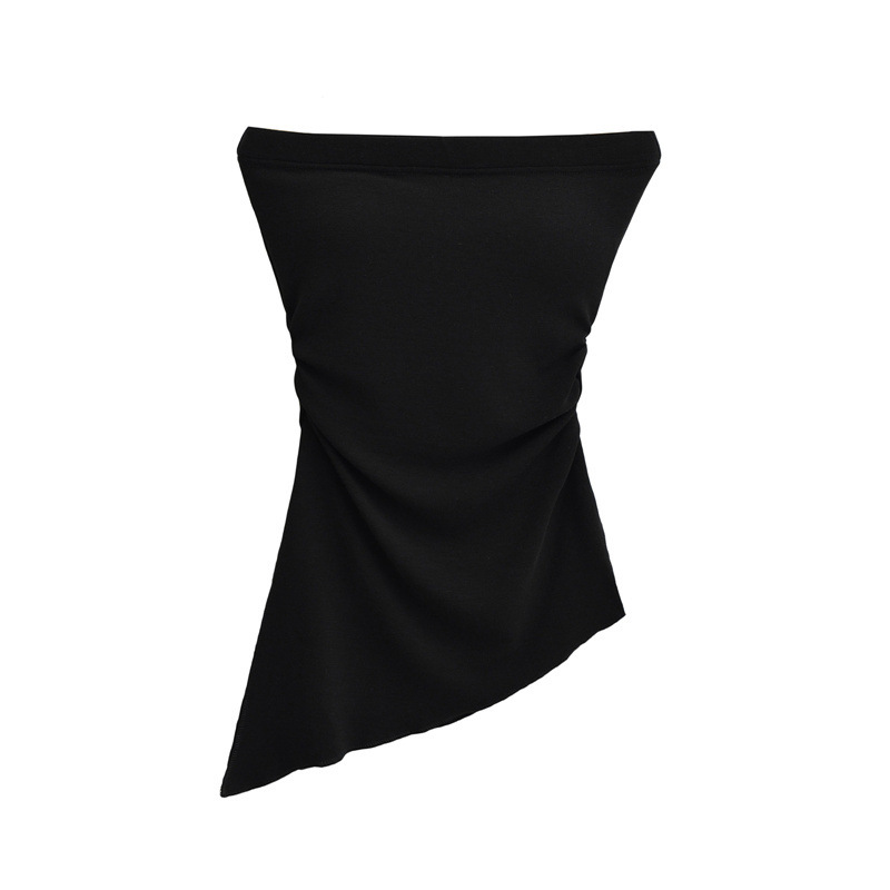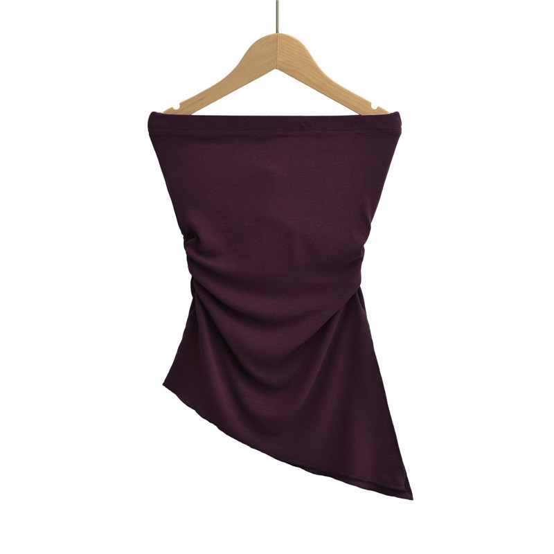 순수한 욕망 오프 숄더 주름 튜브 탑 가슴 패드 여름 여성을위한 새로운 허리 슬림 불규칙한 조끼 탑스토어 가기