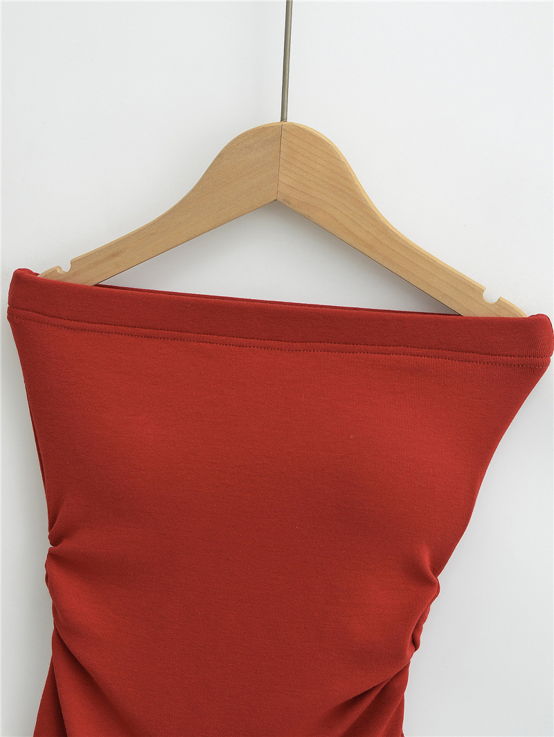 순수한 욕망 오프 숄더 주름 튜브 탑 가슴 패드 여름 여성을위한 새로운 허리 슬림 불규칙한 조끼 탑