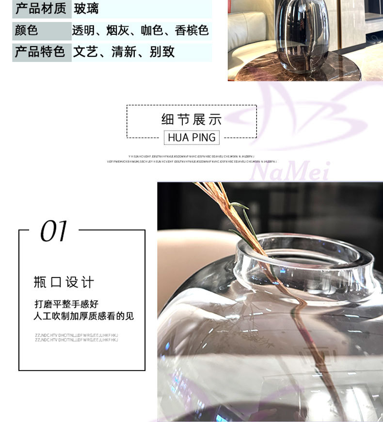 기쁨 유리 꽃병 큰 배 투명한 회색 거실 장식 고급 장식 s 스타일 높은 찾고 인터넷 유명 인사 배달스토어 가기
