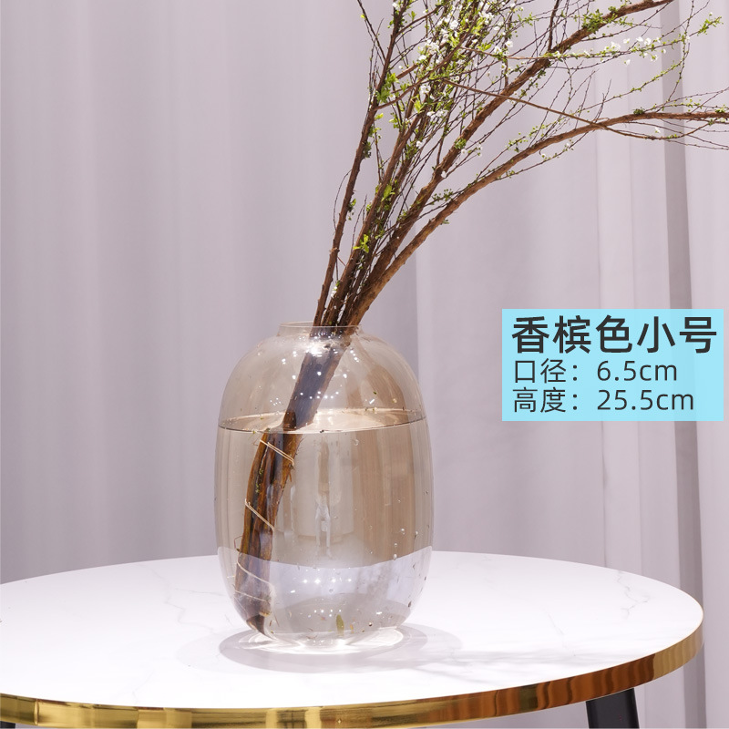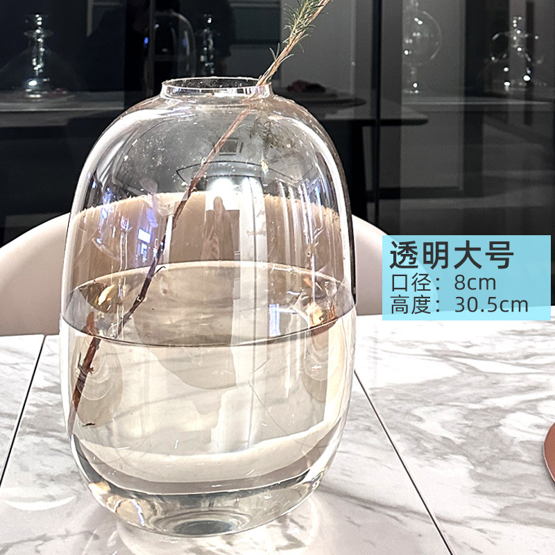 기쁨 유리 꽃병 큰 배 투명한 회색 거실 장식 고급 장식 s 스타일 높은 찾고 인터넷 유명 인사 배달