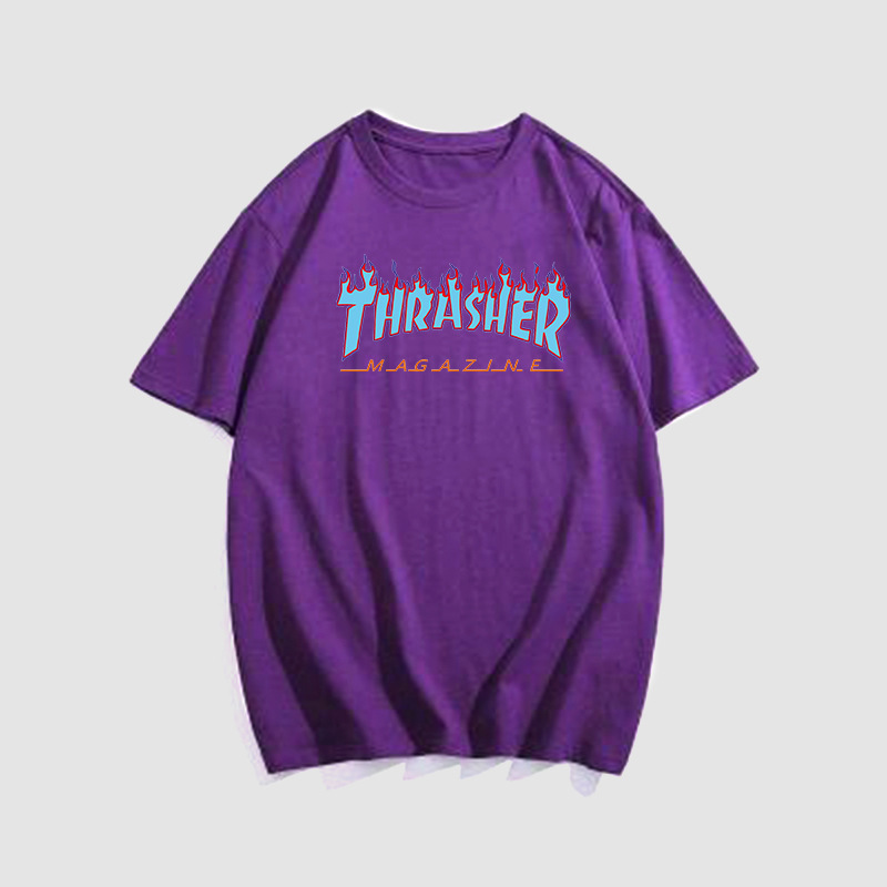여름 새로운 남성 티셔츠 THRASHER 불꽃 대외 무역 레저 스포츠 순수한면 티셔츠 제조업체 재고스토어 가기