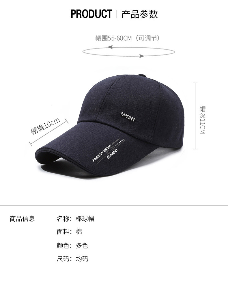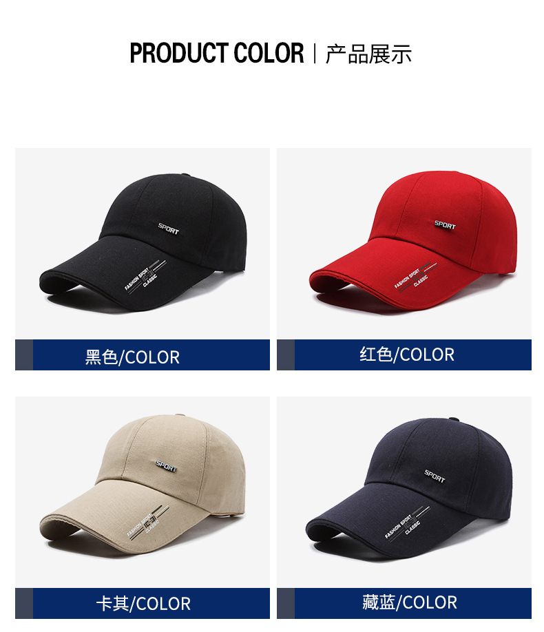 챙이 긴 야구 모자 남성용 야외 스포츠 캐주얼 챙모자 여성용 한국 스타일 다용도 자외선 차단 모자 낚시 모자