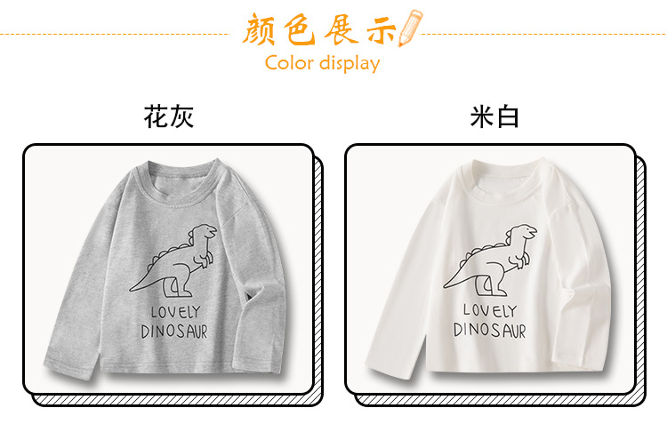2024 트렌디 한 한국식 아동복 가을 새로운 어린이 긴팔 티셔츠 공룡 소년 바지 셔츠 아기 옷 도매스토어 가기