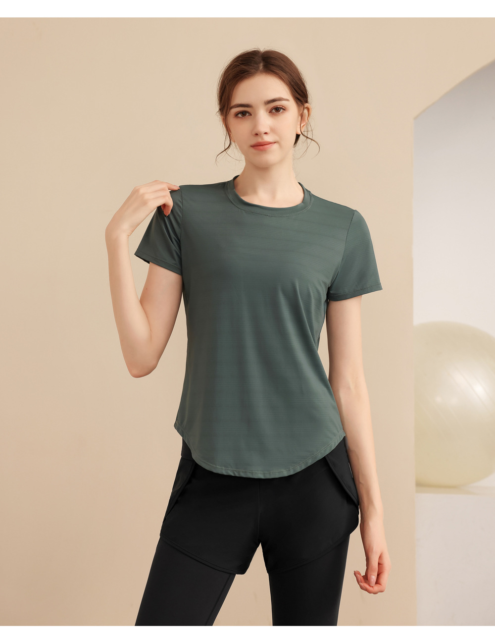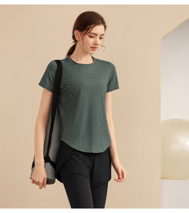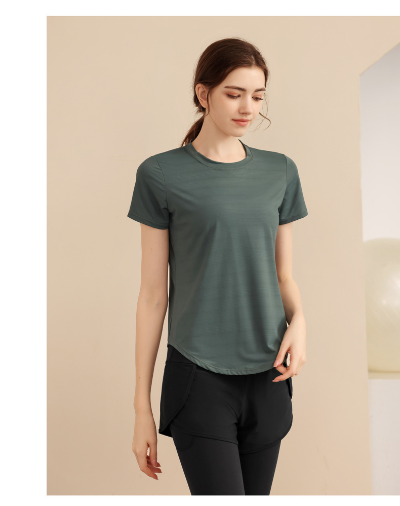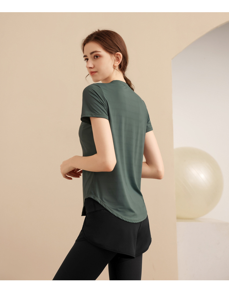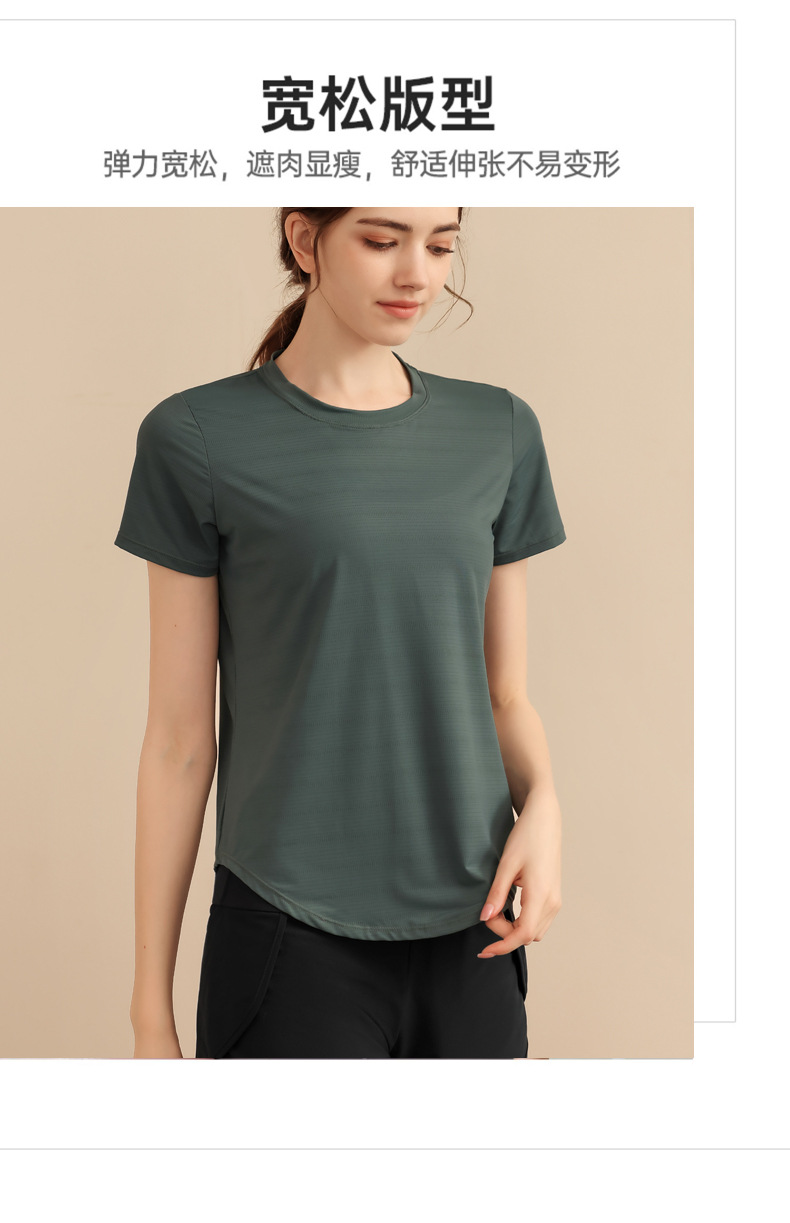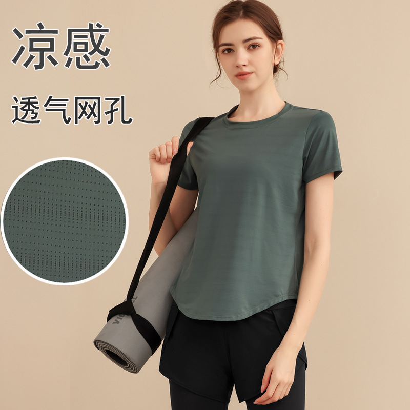 2025 새로운 스포츠 반팔 피트니스 탑 솔리드 컬러 스포츠 티셔츠 여성용 느슨한 슬리밍 메쉬 통기성 요가 옷