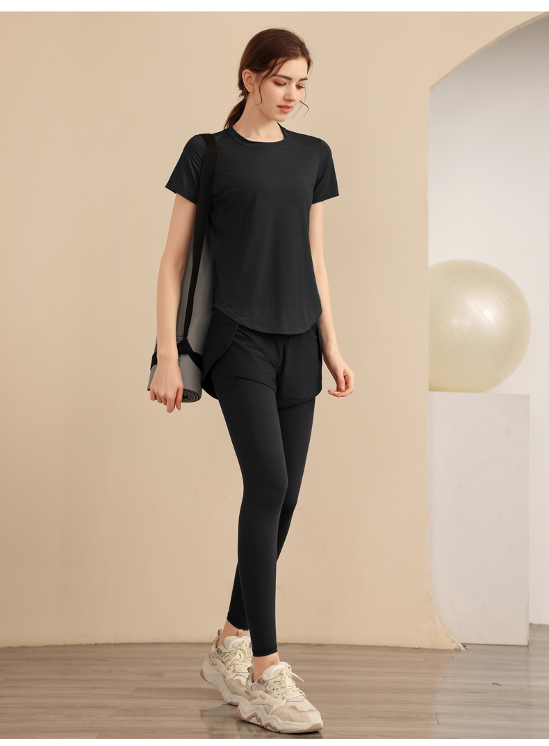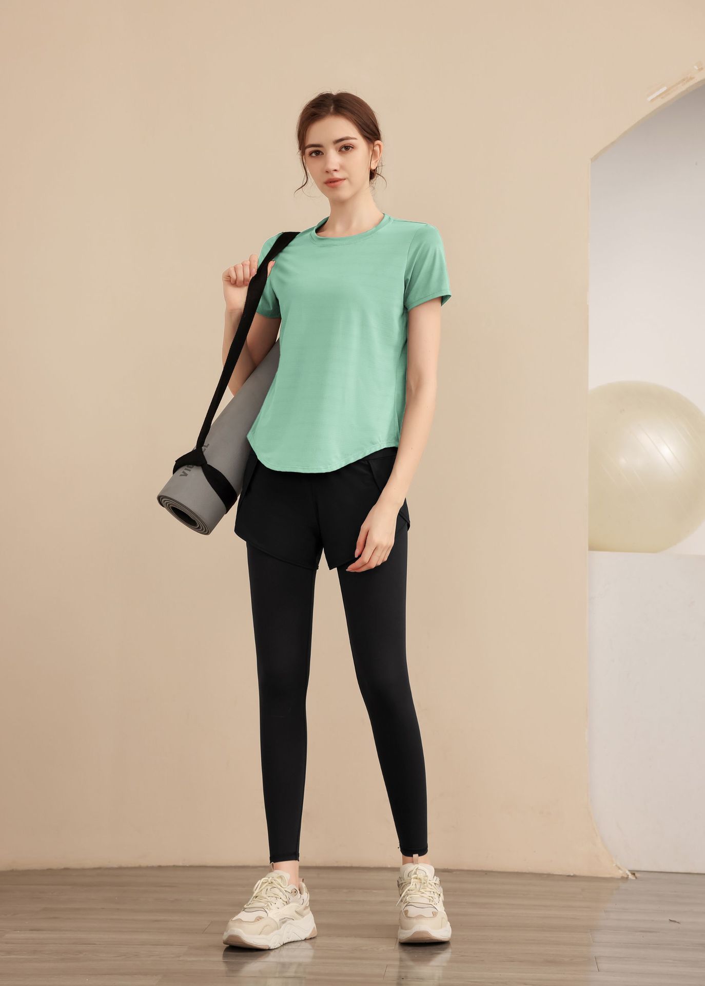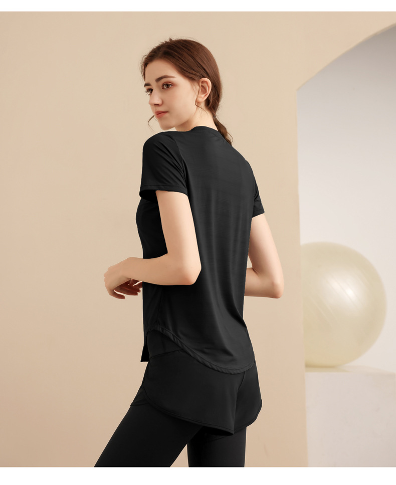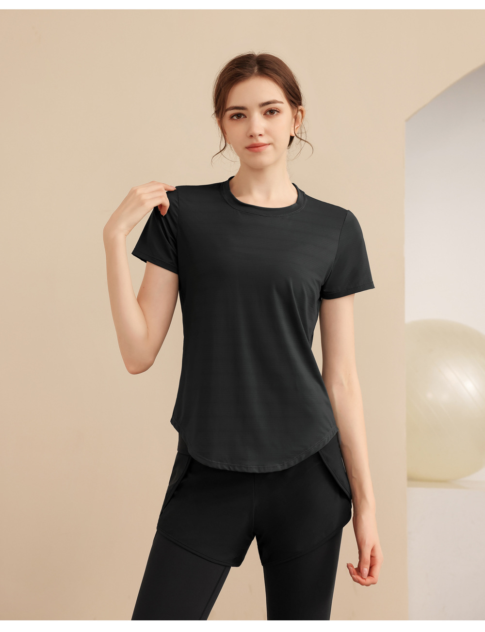 2025 새로운 스포츠 반팔 피트니스 탑 솔리드 컬러 스포츠 티셔츠 여성용 느슨한 슬리밍 메쉬 통기성 요가 옷